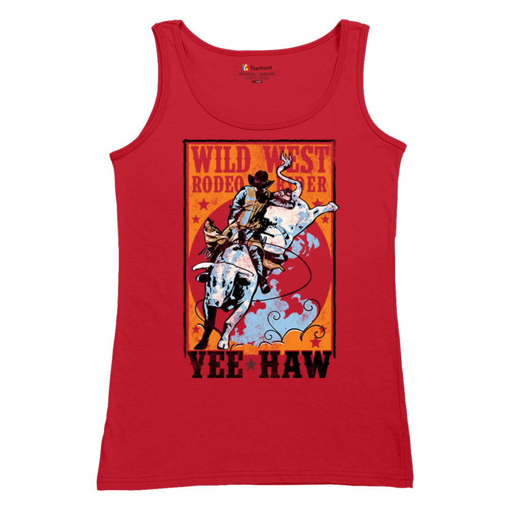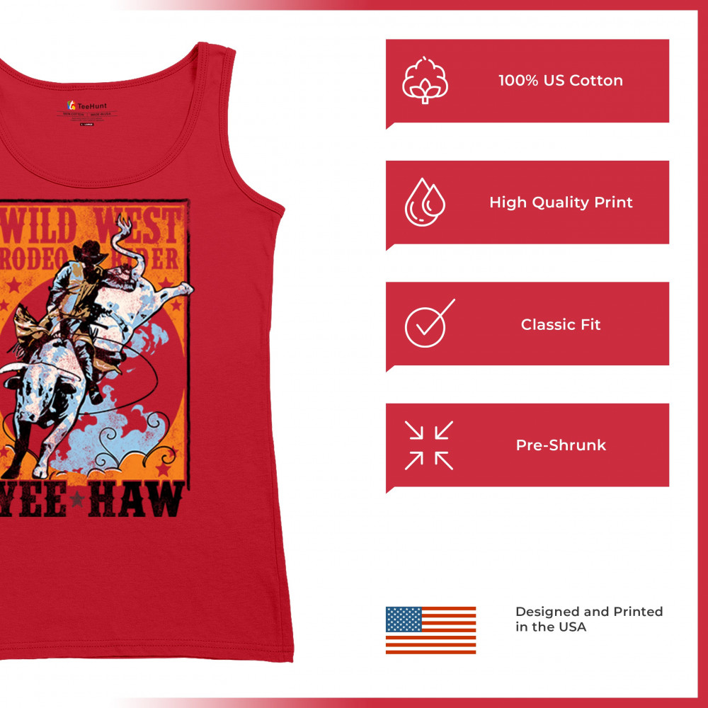 WILD WEST RODEO RIDER women's tank top bull riding cowboy ranch country life red