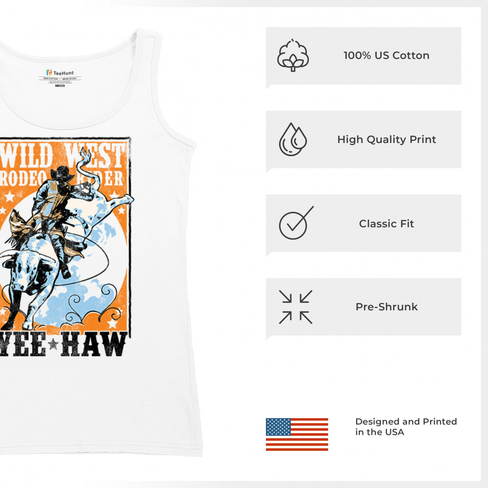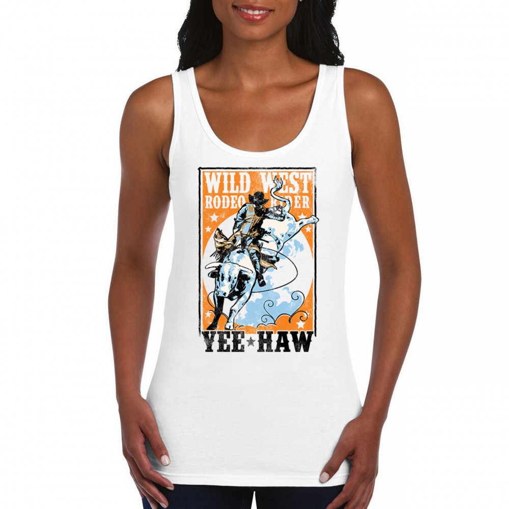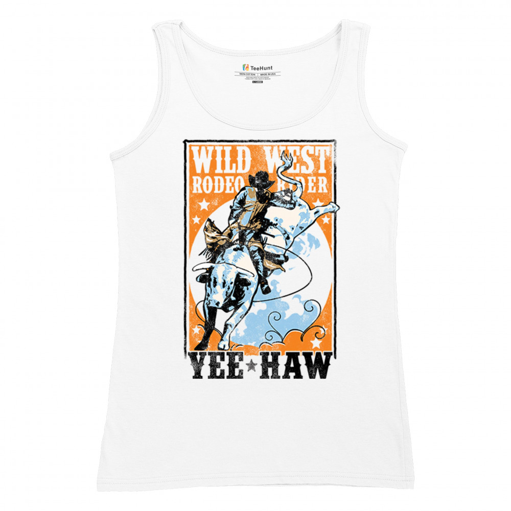 Bold cowboy bull riding design with orange backdrop, perfect for rodeo fans, western events, and country festivals.
