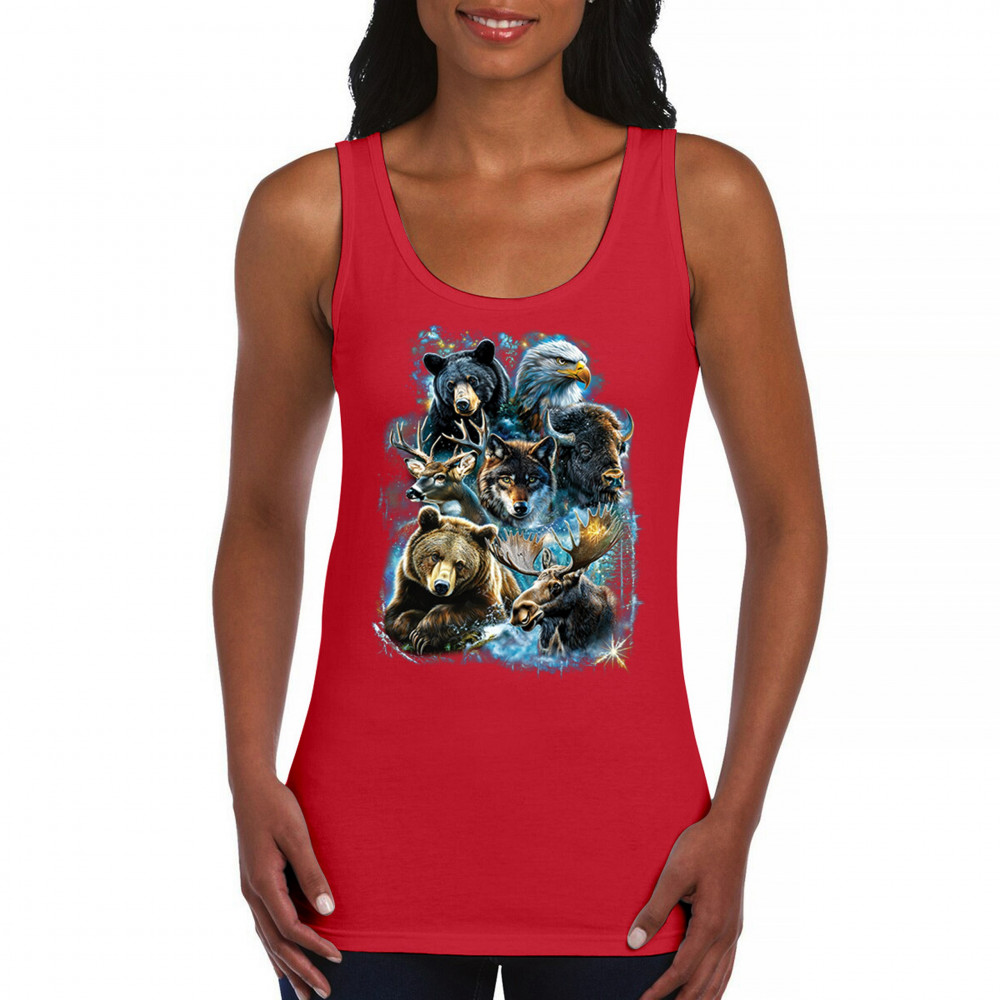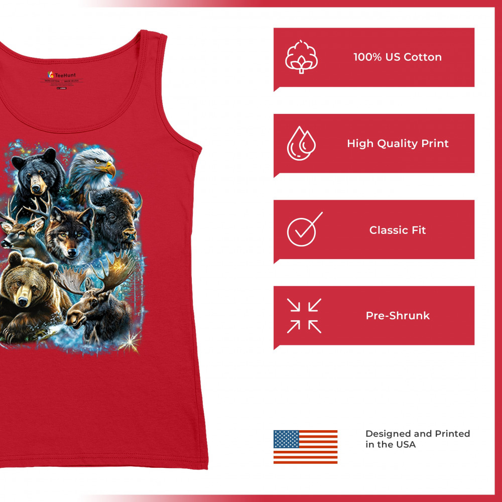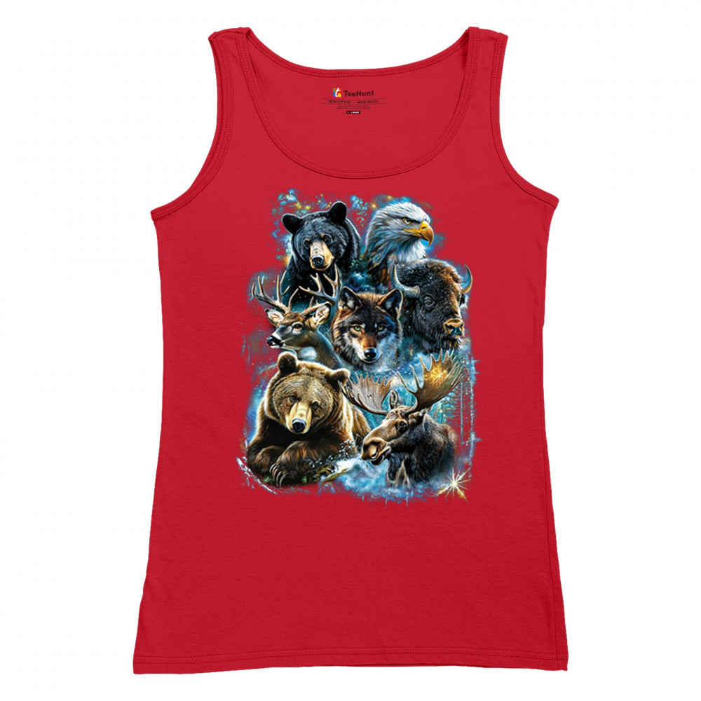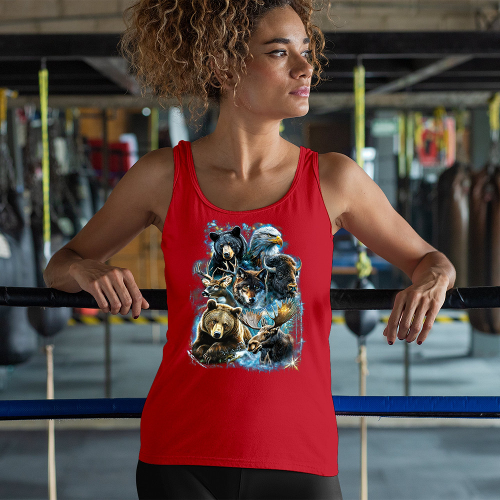 Wilderness design with moose, bear, eagle, bison, and wolf. A bold tribute to forest animals, nature strength, and rugged outdoor spirit.