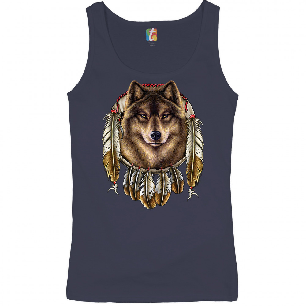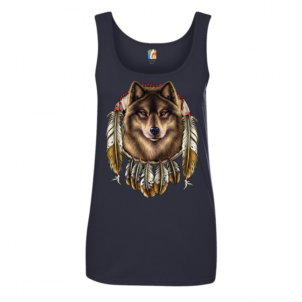 WOLF SPIRIT women's tank top native american dreamcatcher indigenous navy blue
