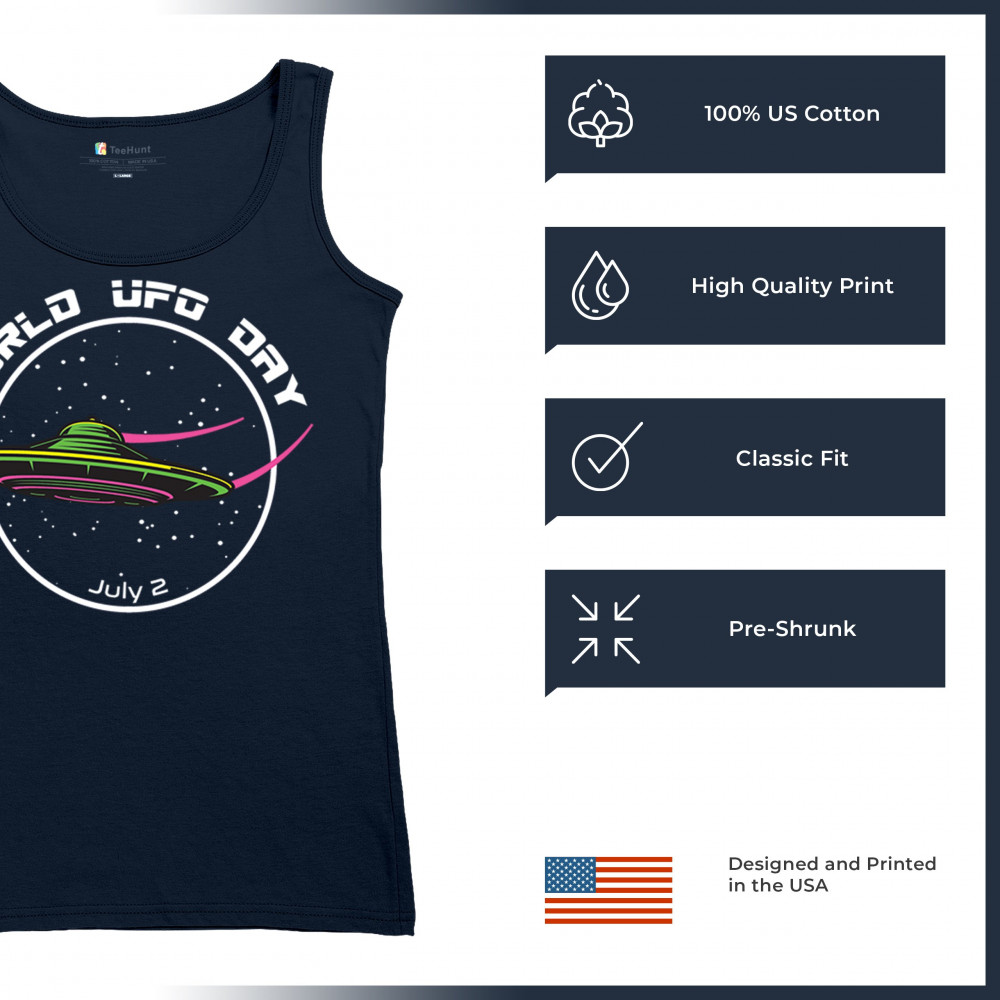 Celebrate World UFO Day on July 2nd with a captivating design featuring a sleek UFO against a starry sky. Perfect for space enthusiasts and UFO lovers.