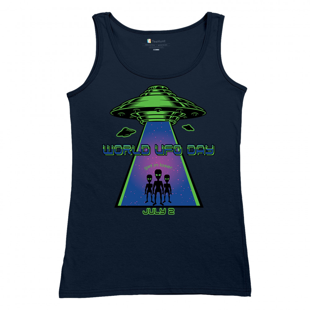 Join the celebration of World UFO Day with this unique design, featuring a detailed UFO beaming up three cheerful aliens with the phrase "Get in, loser." Perfect for those who are fascinated by the unknown and have a sense of humor about extraterrestrial life. Whether you're attending a UFO event, meeting with fellow enthusiasts, or just want to express your quirky style, this design is a must-have. Embrace the spirit of curiosity and fun with this eye-catching design for July 2nd.