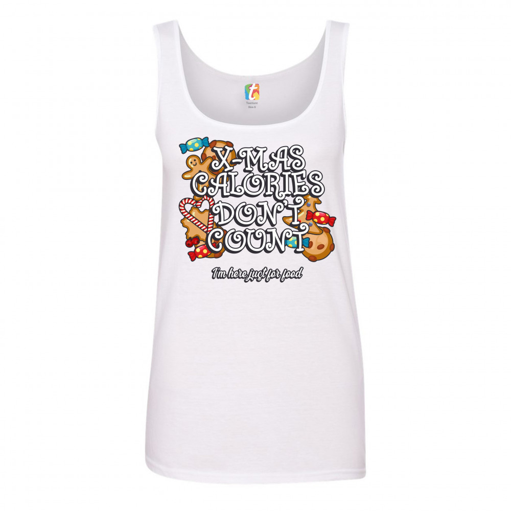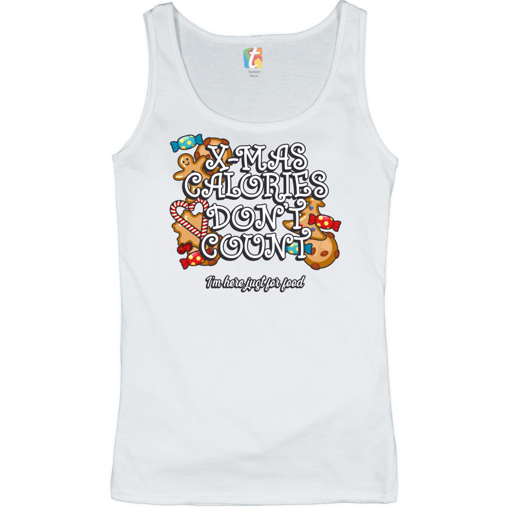 X-MAS CALORIES DON'T COUNT women's tank top merry christmas naughty or nice white