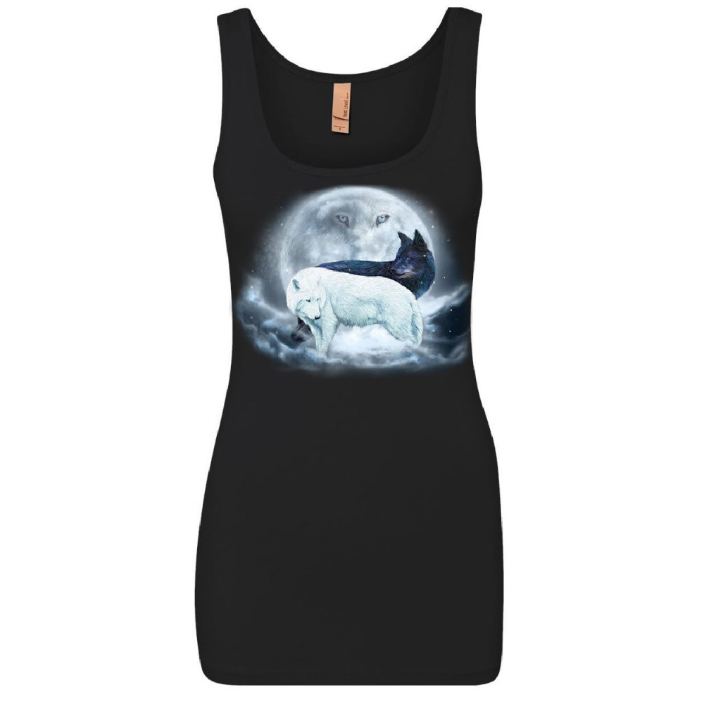 YIN & YANG WOLVES women's tank top animals wildlife nature wolf pack moon top black
