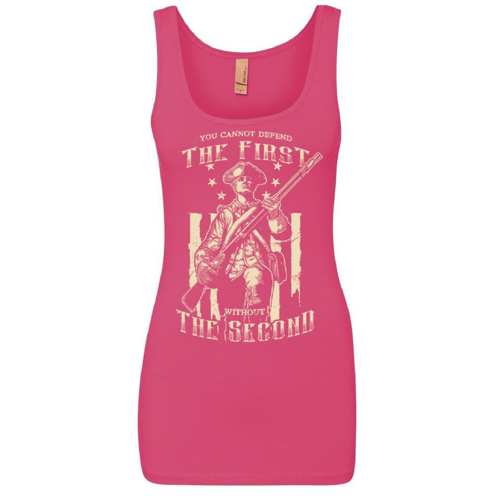 YOU CANNOT DEFEND THE FIRST WITHOUT THE SECOND you can't defend the first without the second women's tank top militia 2a top pink