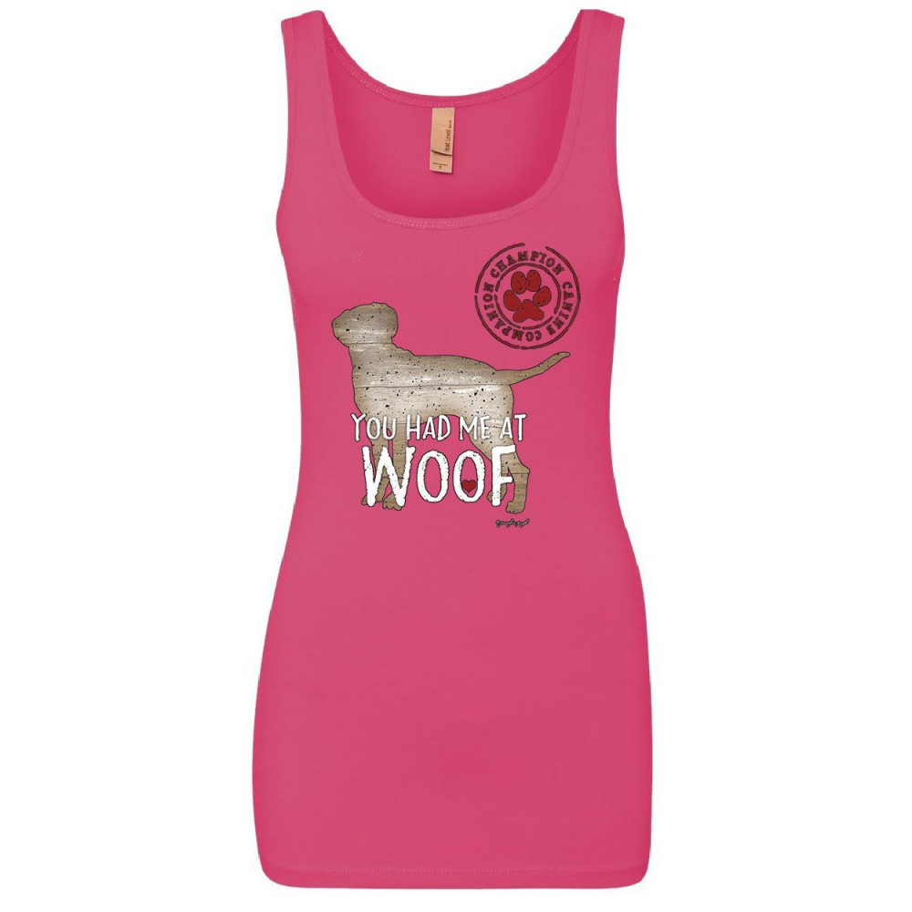 YOU HAD ME AT WOOF women's tank top pet friend dogs doggie puppy paw bark top pink