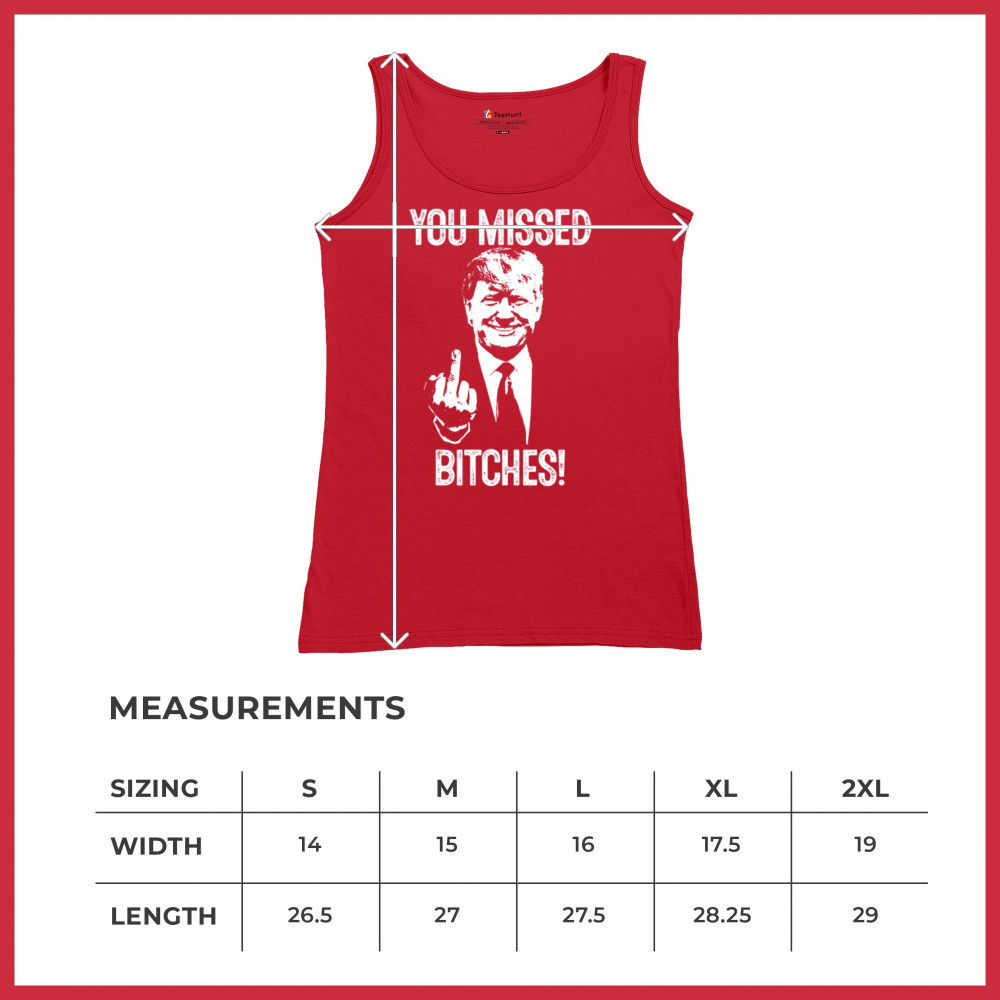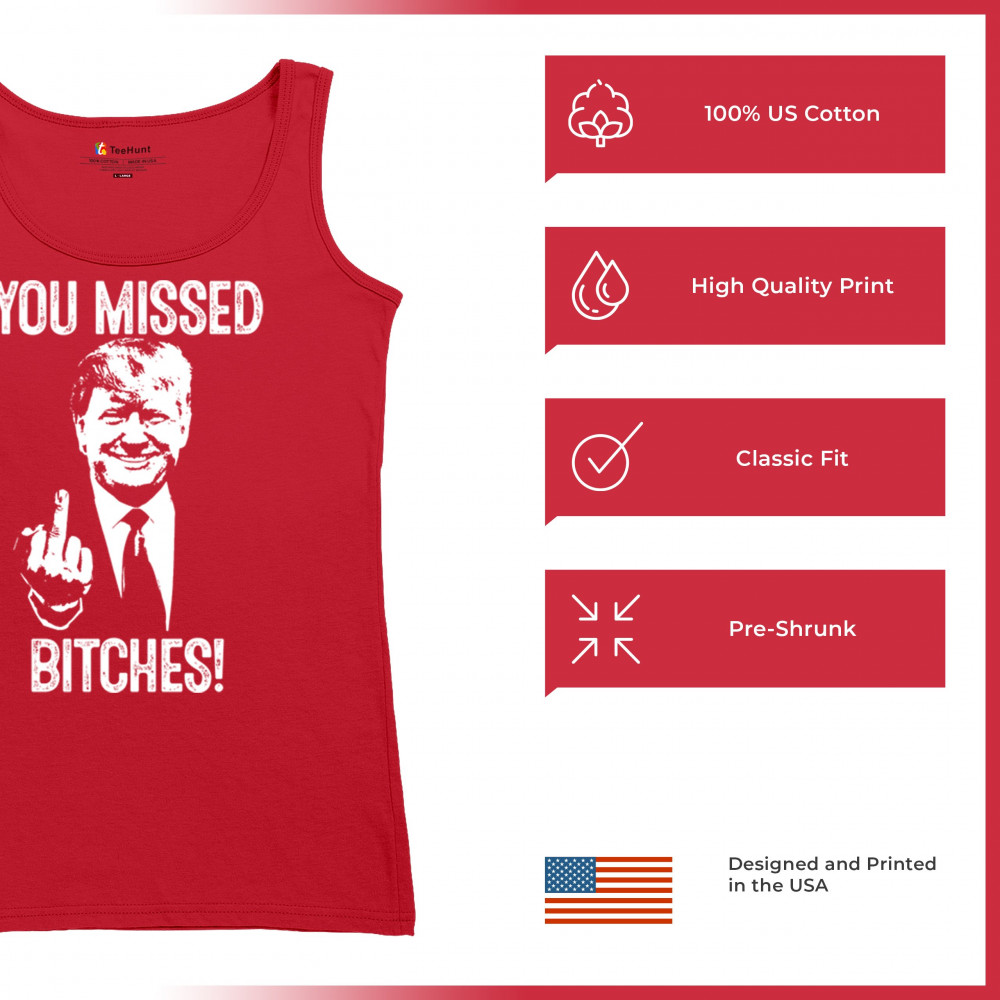 Commemorate Trump's resilience and determination with our bold "You Missed Bitches!" design. Show your support and patriotism.