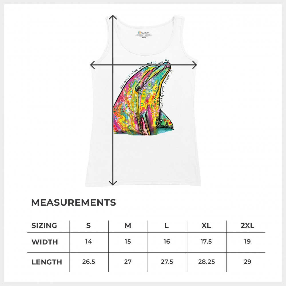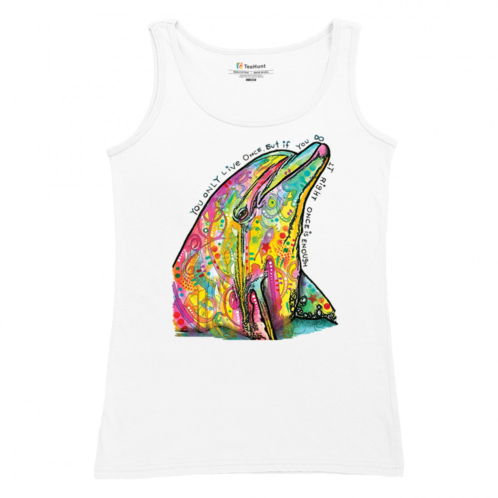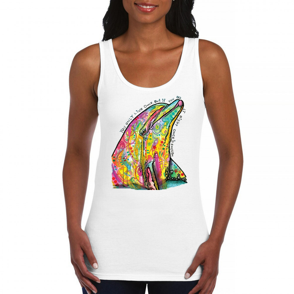 YOU ONLY LIVE ONCE women's tank top cute neon dolphin dean russo yolo white
