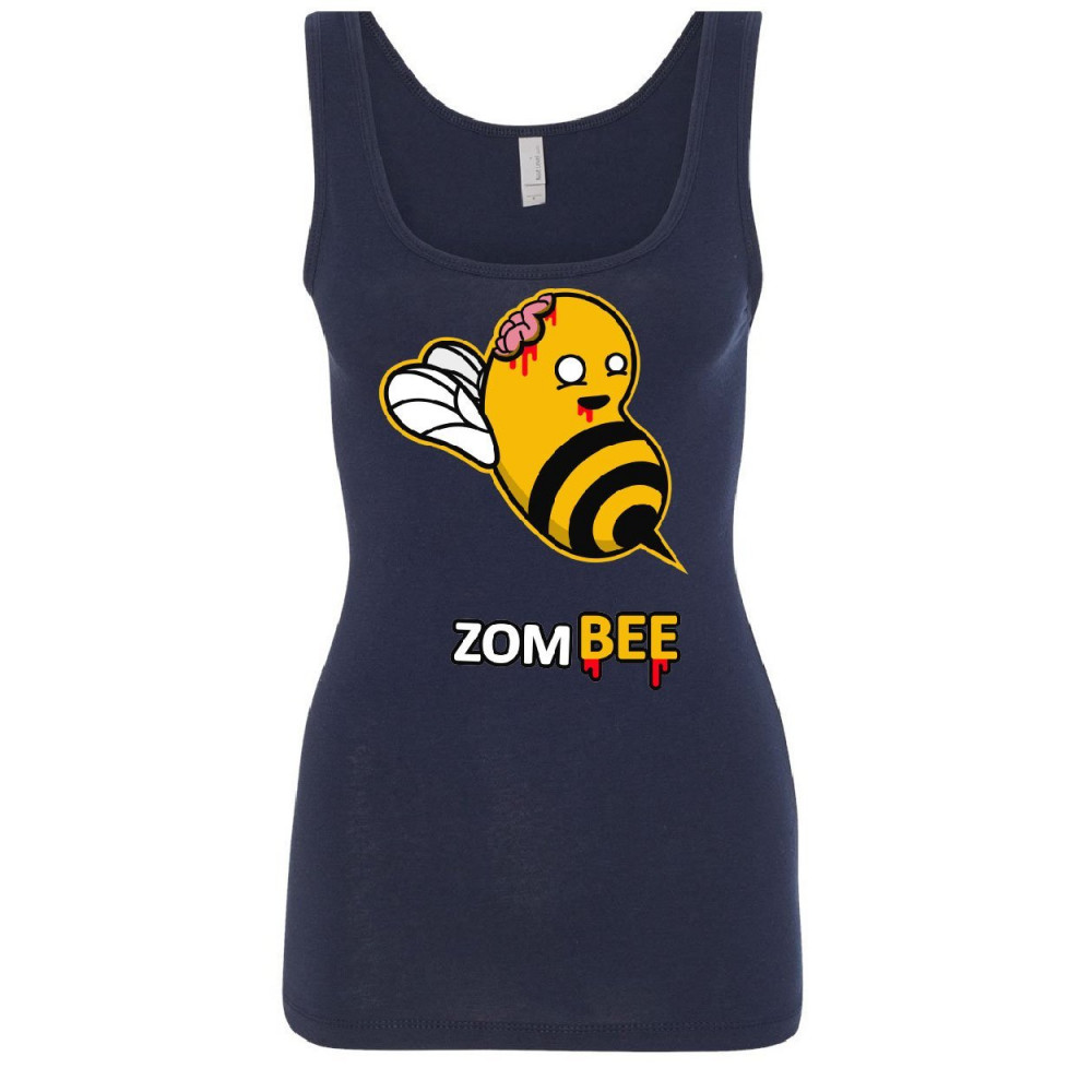 ZOMBEE women's tank top zombie apocalypse funny dead bee outbreak brains top navy blue