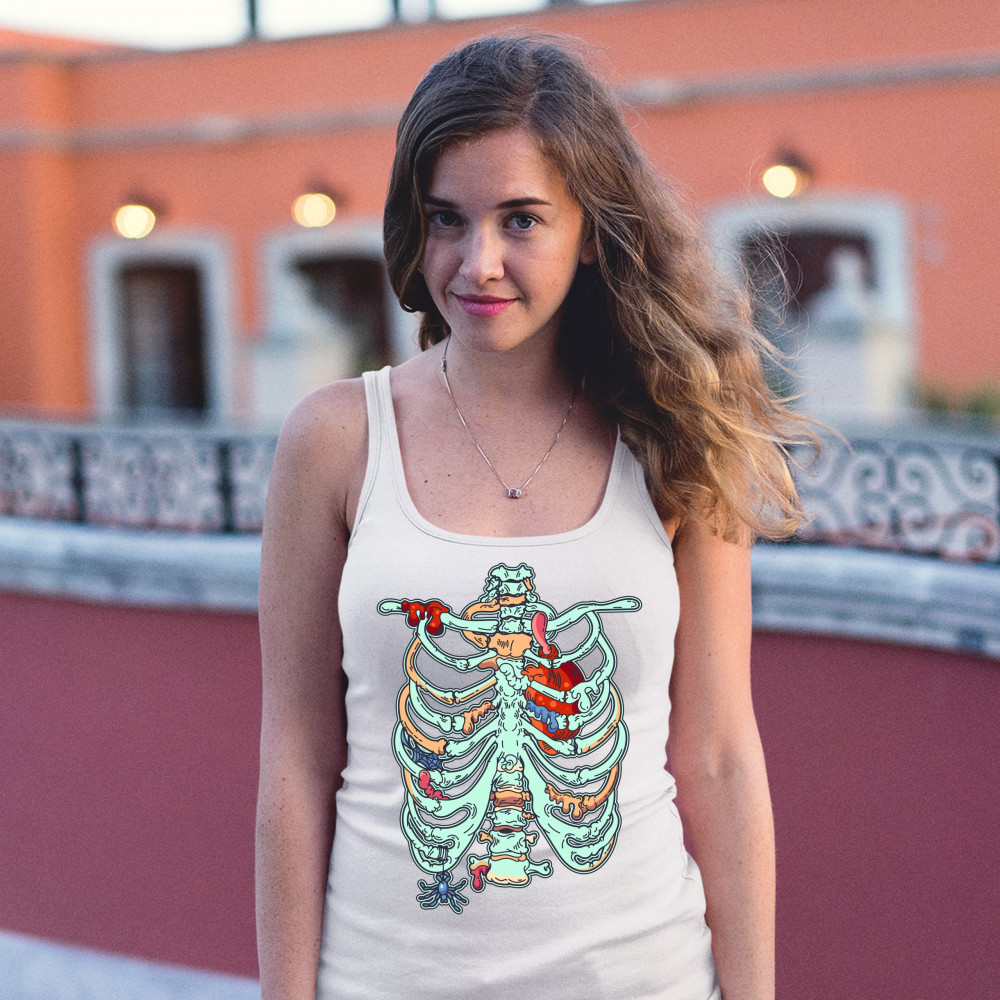 ZOMBIE RIB CAGE women's tank top all hallows' eve spooky halloween skeleton white