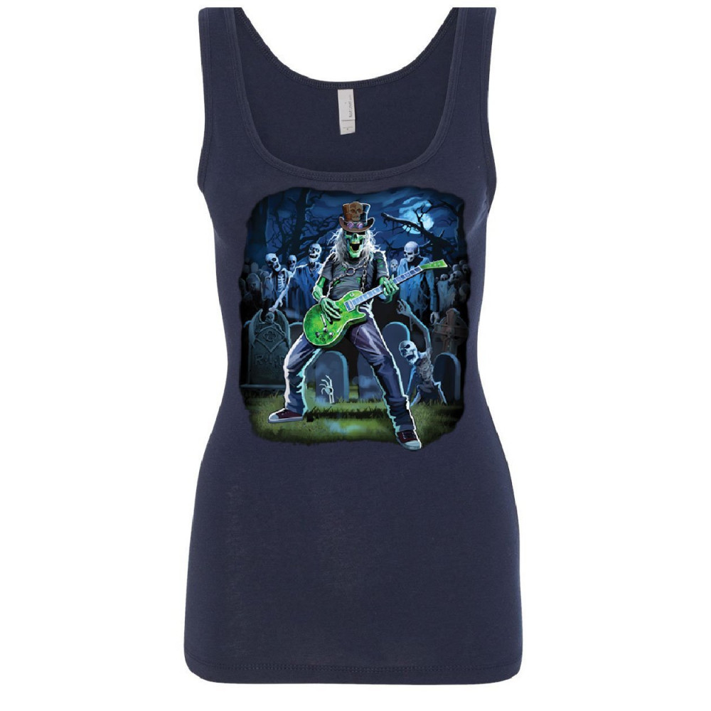 ZOMBIE ROCK women's tank top heavy death metal music skull hard rock top navy blue
