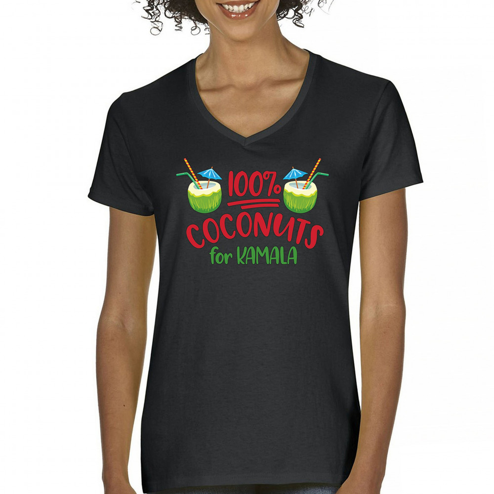 100% COCONUTS FOR KAMALA women's v-neck t-shirt harris 2024 i'm speaking tee black