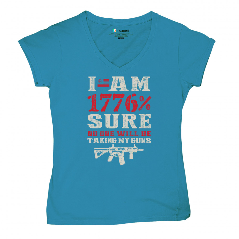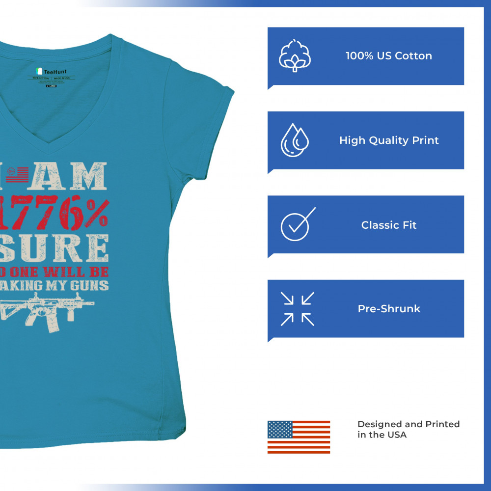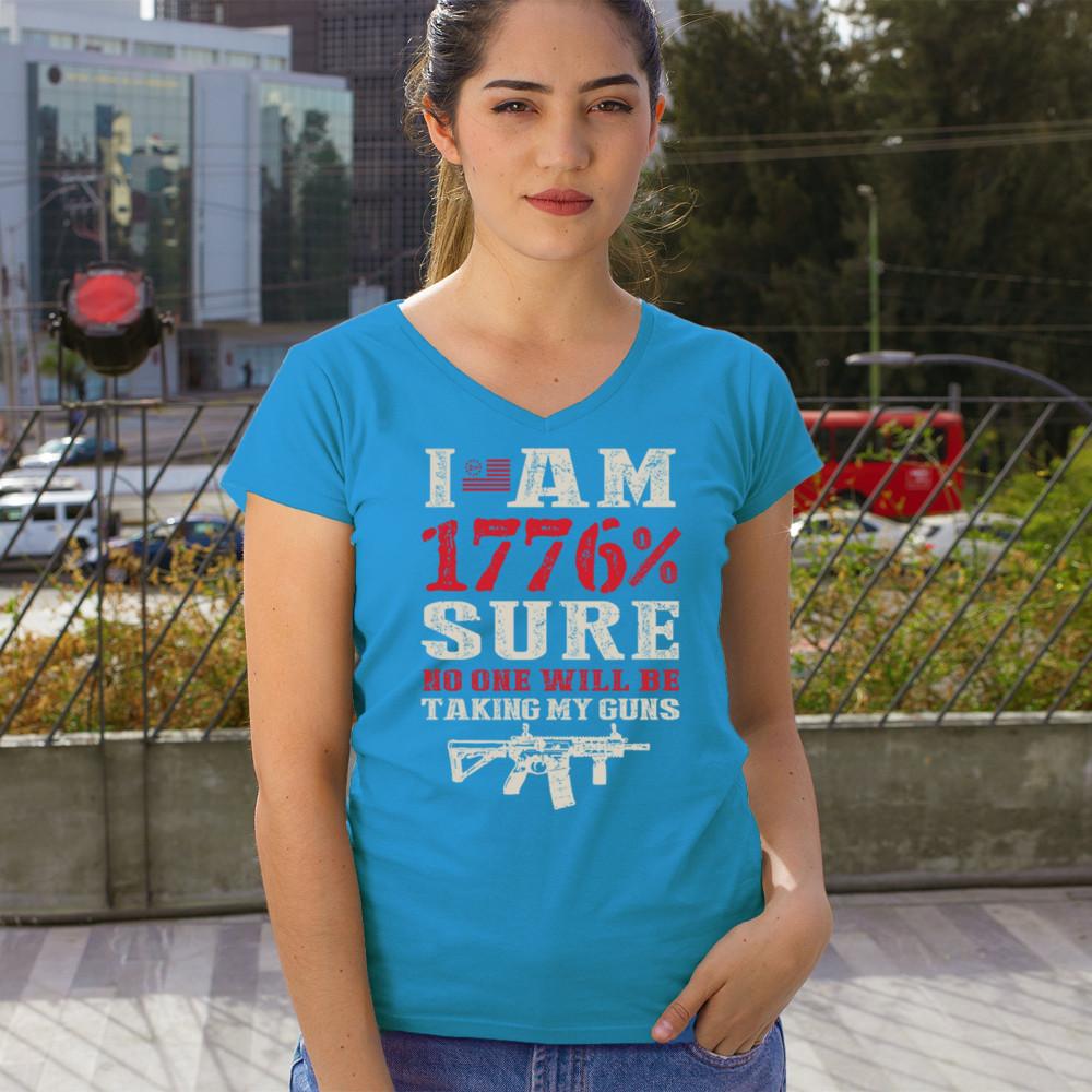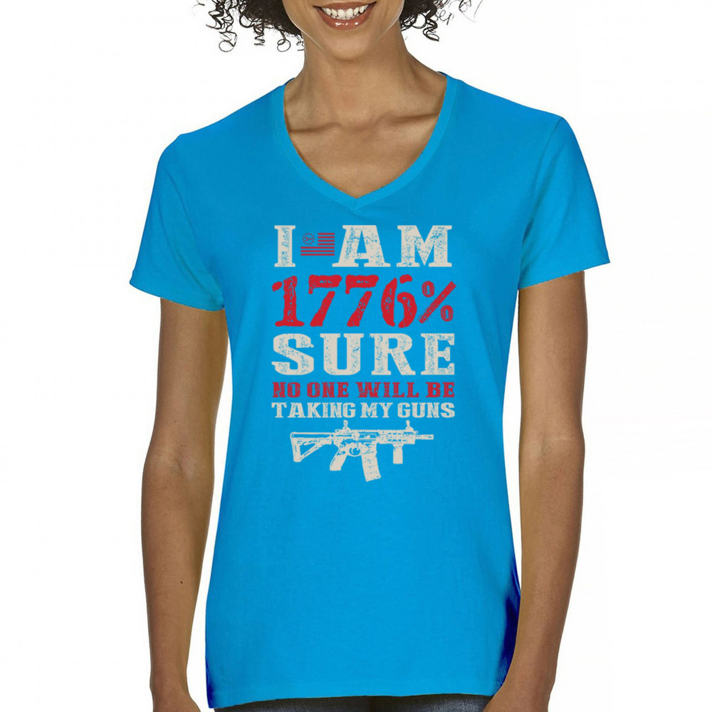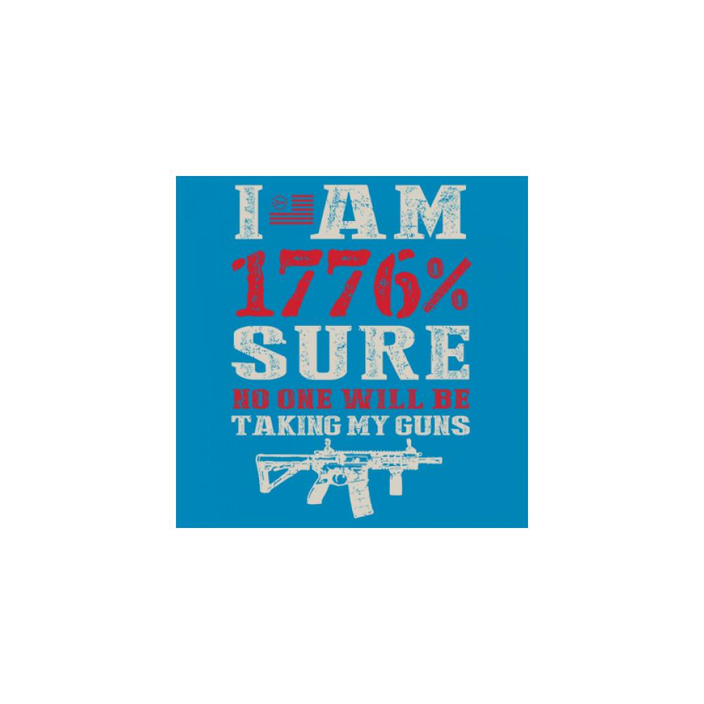 This eye-catching design shouts American pride with its 1776% certainty and pro-gun message. A distressed rifle graphic pairs with bold lettering and patriotic red, white, and blue styling. Perfect for gun owners, liberty advocates, and veterans who take their constitutional rights seriously. A true celebration of freedom and firepower.