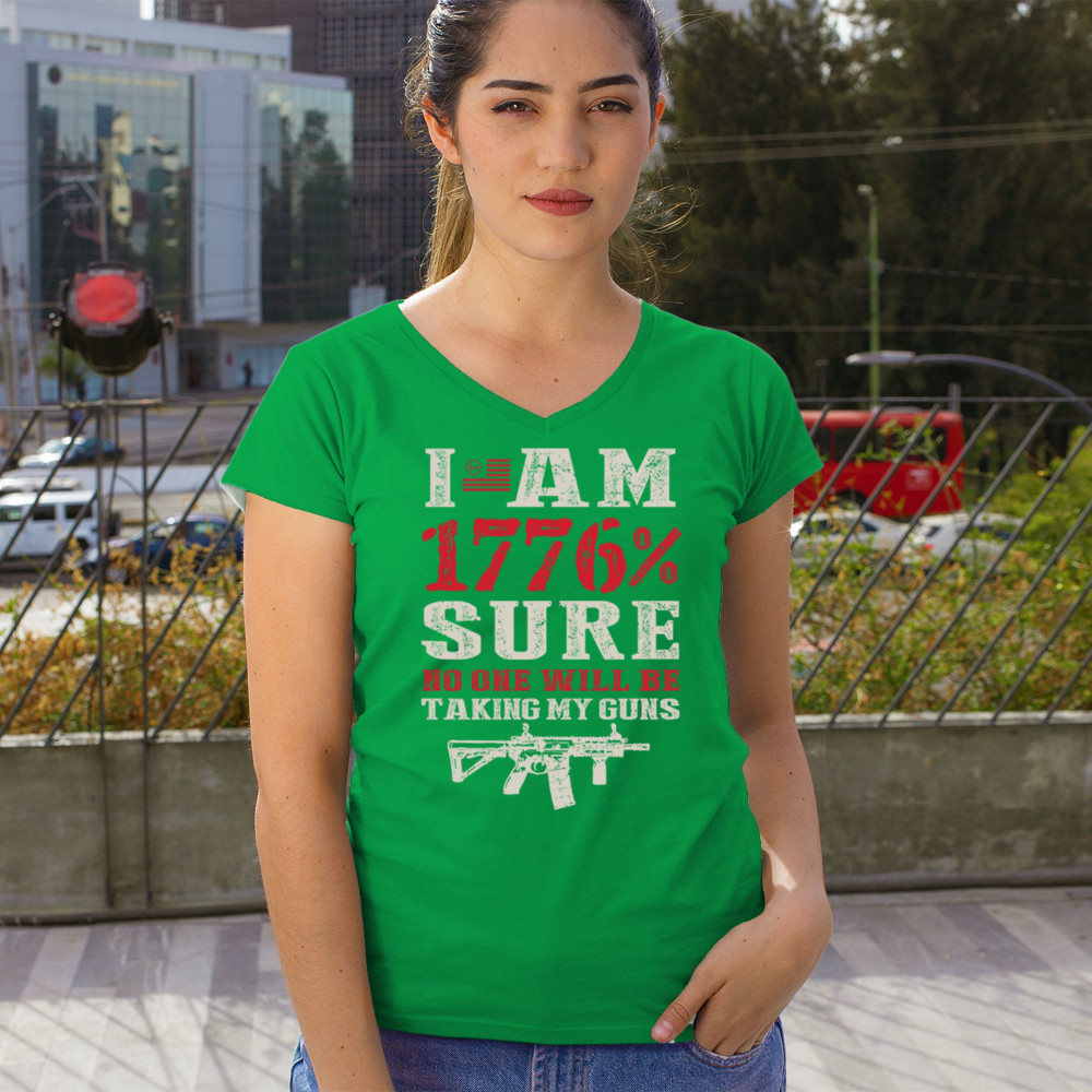 Bold 1776% pro-gun patriotic shirt design with AR rifle and red, white, and blue pride. Great for 2A supporters and freedom lovers.