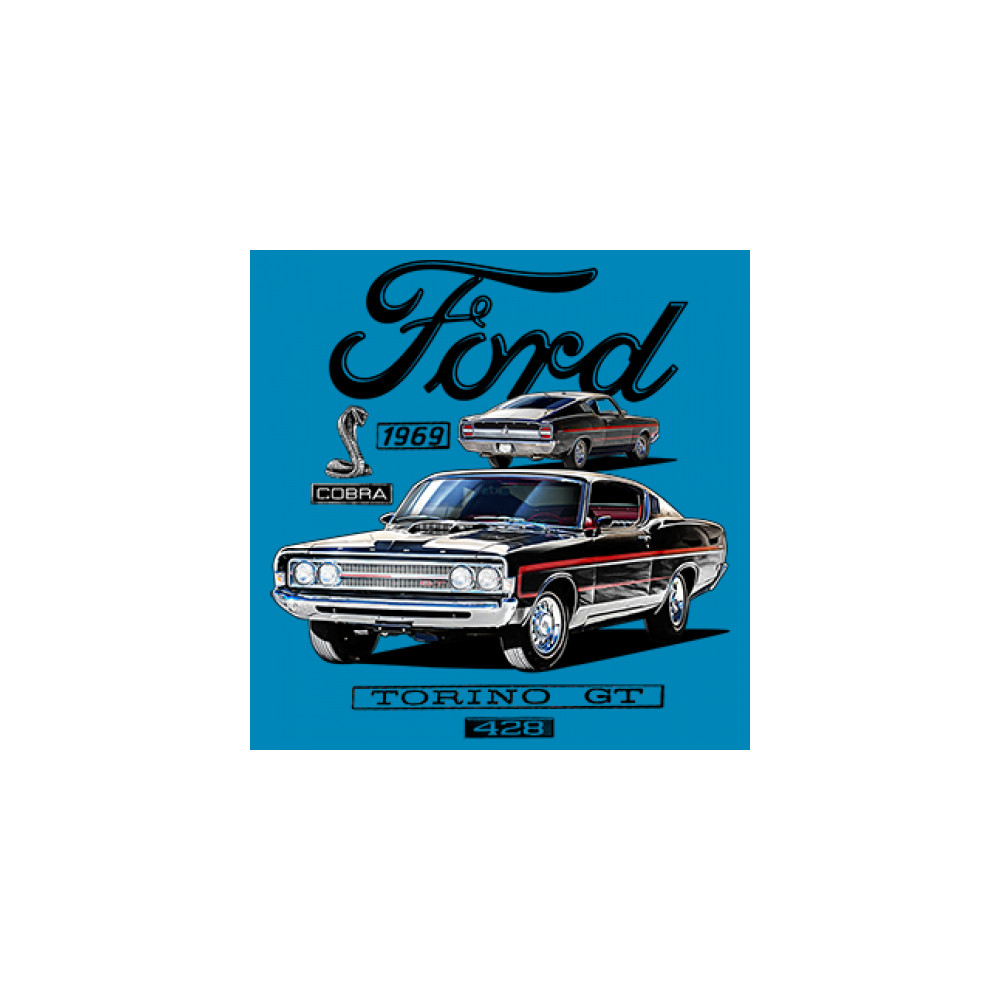 1969 Ford Torino GT Cobra design with racing stripes and Cobra badge—perfect for muscle car fans, Ford collectors, and show displays.