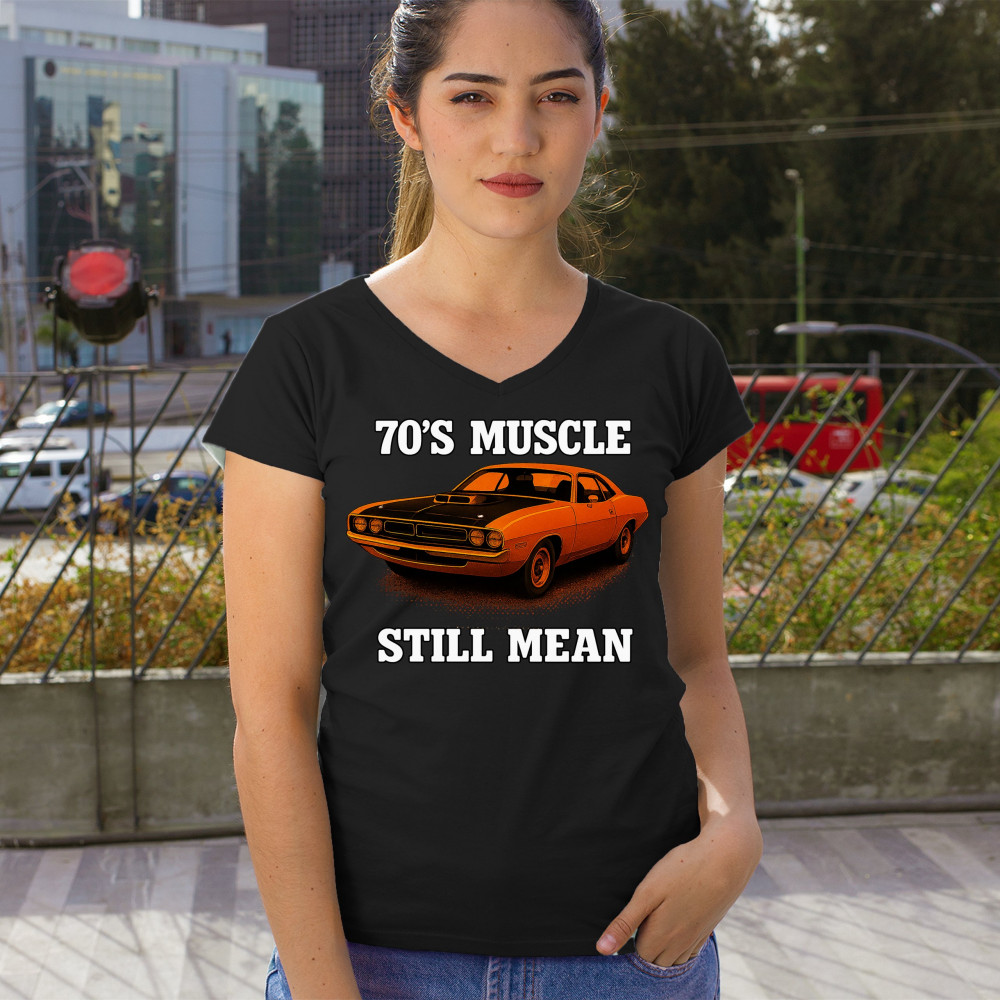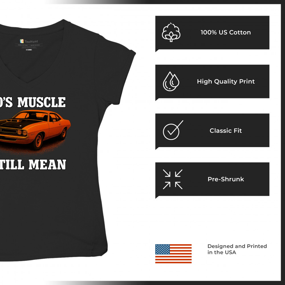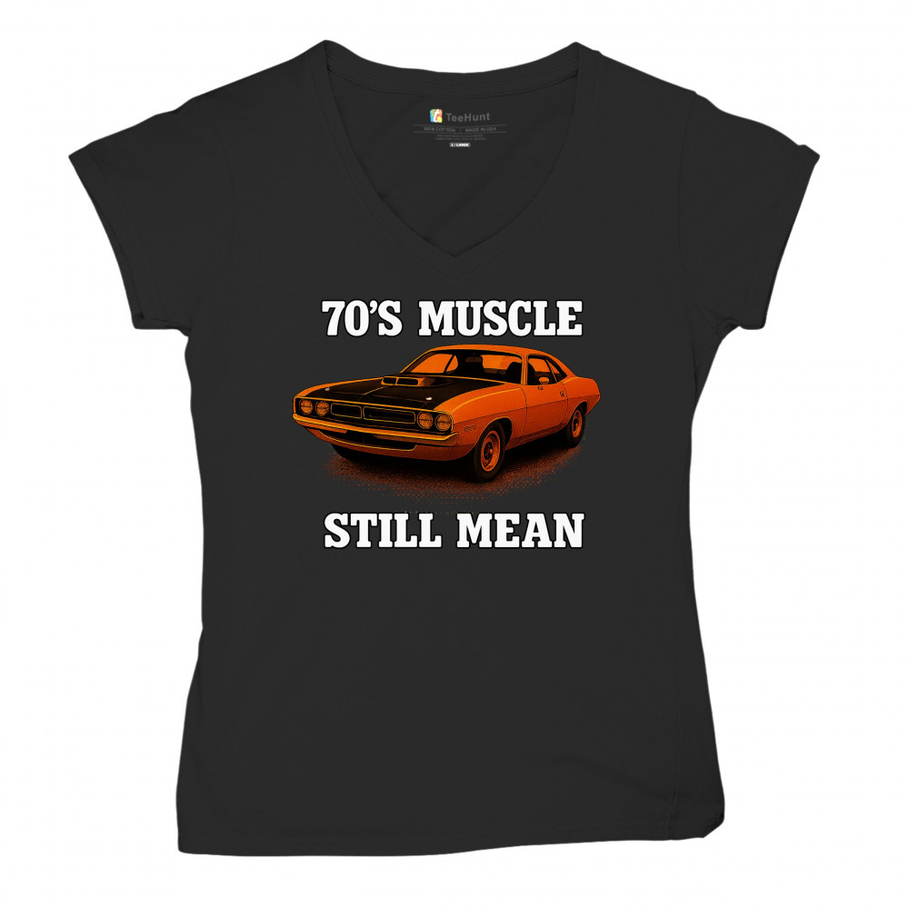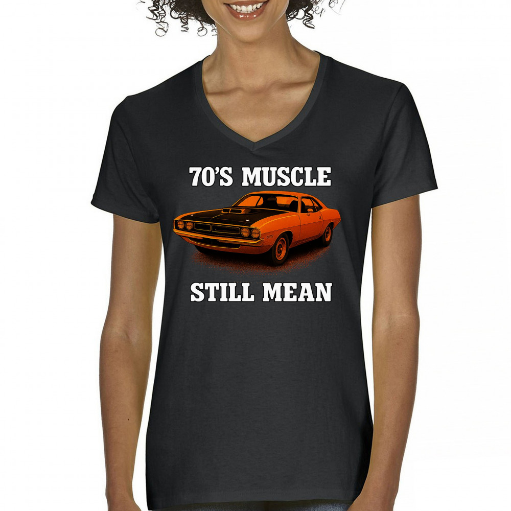1970'S AMERICAN MUSCLE CAR women's v-neck t-shirt classic performance still mean black