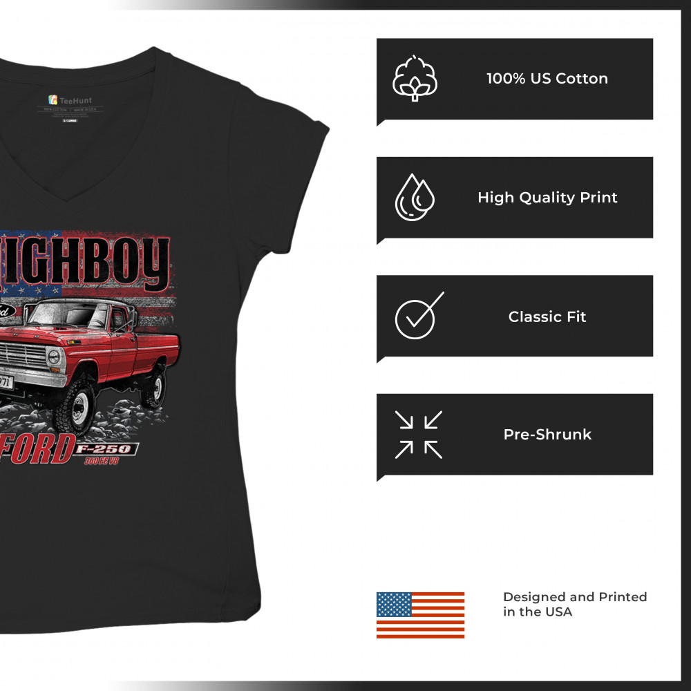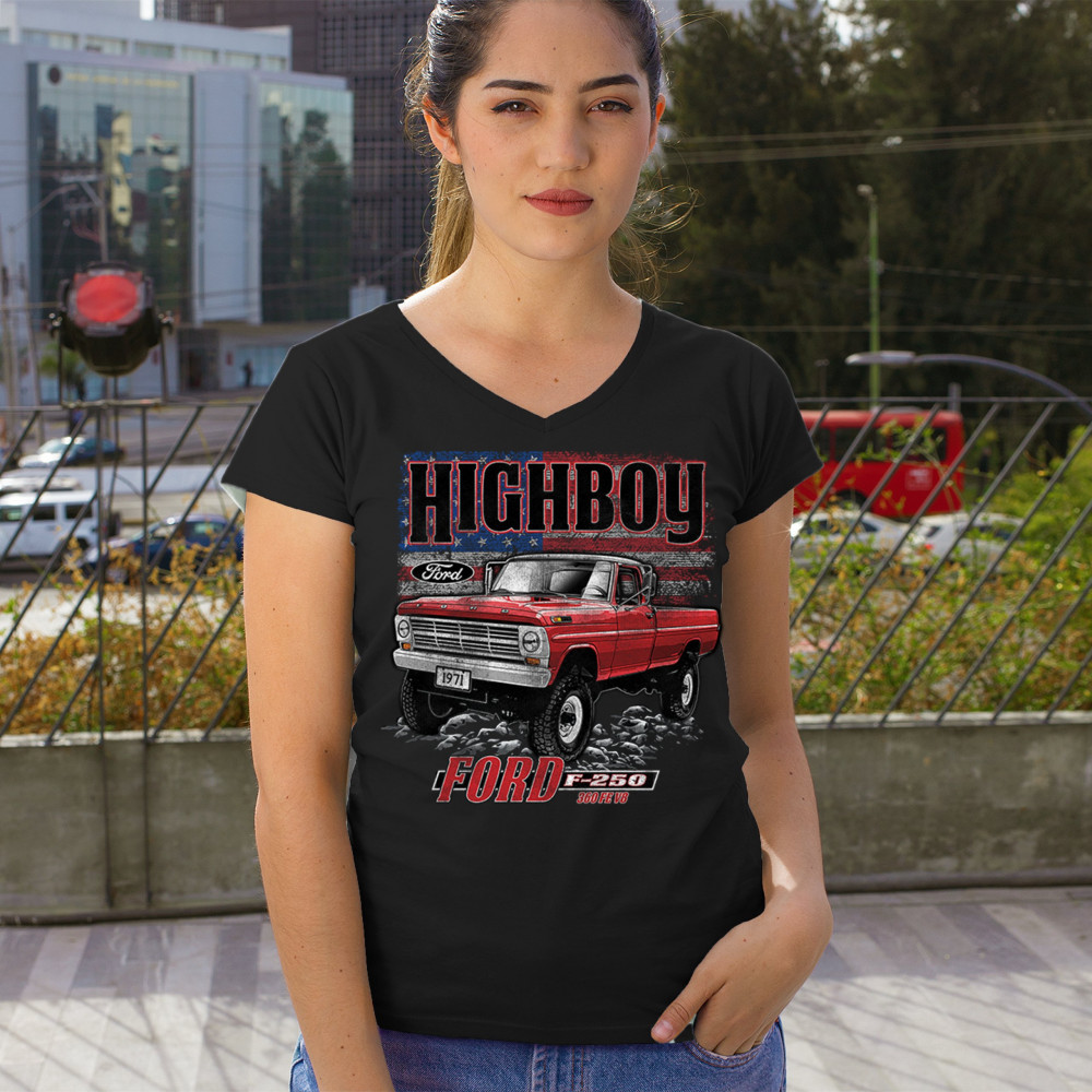 This vintage truck design features a 1971 Ford F-250 Highboy 4x4 with a classic lifted stance and patriotic flag background. Bold and nostalgic, it’s perfect for classic truck fans, 4x4 lovers, off-roaders, and collectors who appreciate American V8 tradition. Show it off at truck shows, meets, or cruise nights.