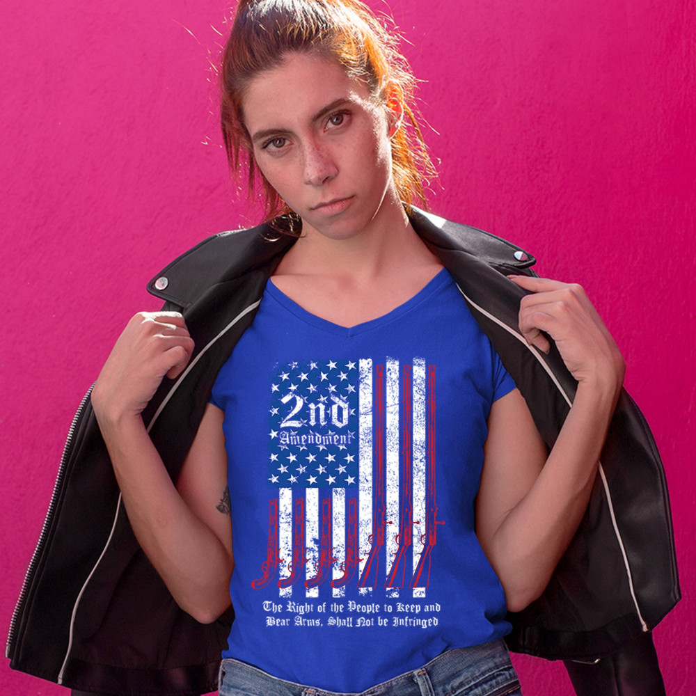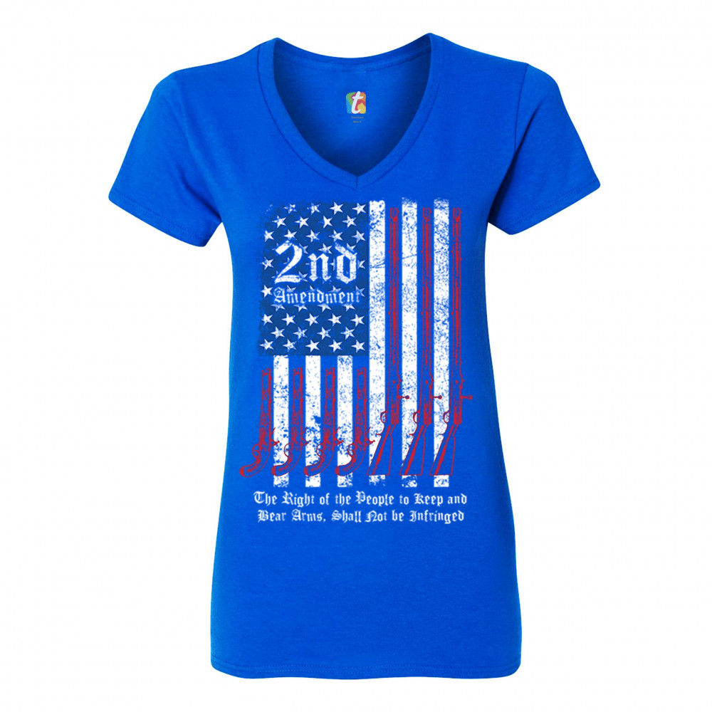 2ND AMENDMENT AMERICAN FLAG women's v-neck t-shirt right to bear arms 2a tee royal blue