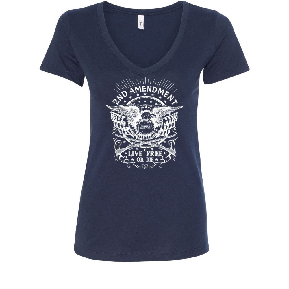 2ND AMENDMENT LIVE FREE OR DIE women's v-neck t-shirt 2a gun rights freedom usa navy blue