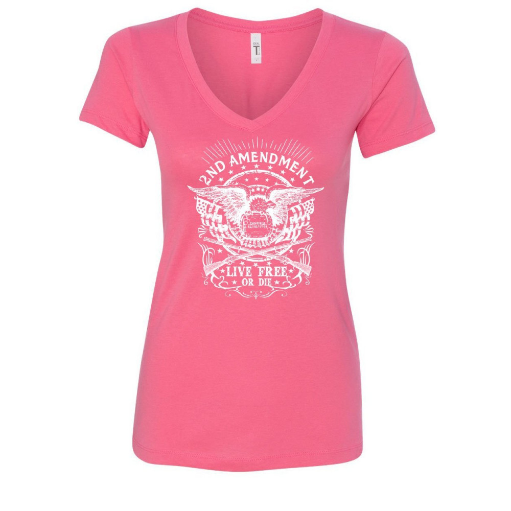 2ND AMENDMENT LIVE FREE OR DIE women's v-neck t-shirt 2a gun rights freedom usa pink