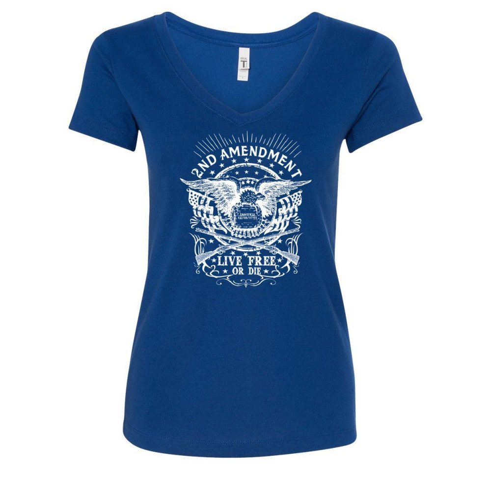 2ND AMENDMENT LIVE FREE OR DIE women's v-neck t-shirt 2a gun rights freedom usa royal blue