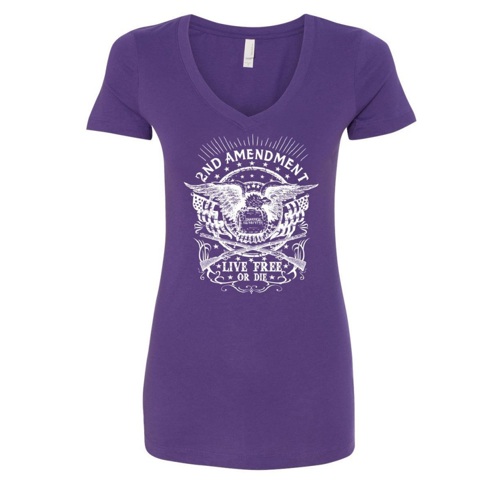 2ND AMENDMENT LIVE FREE OR DIE women's v-neck t-shirt 2a gun rights freedom usa purple