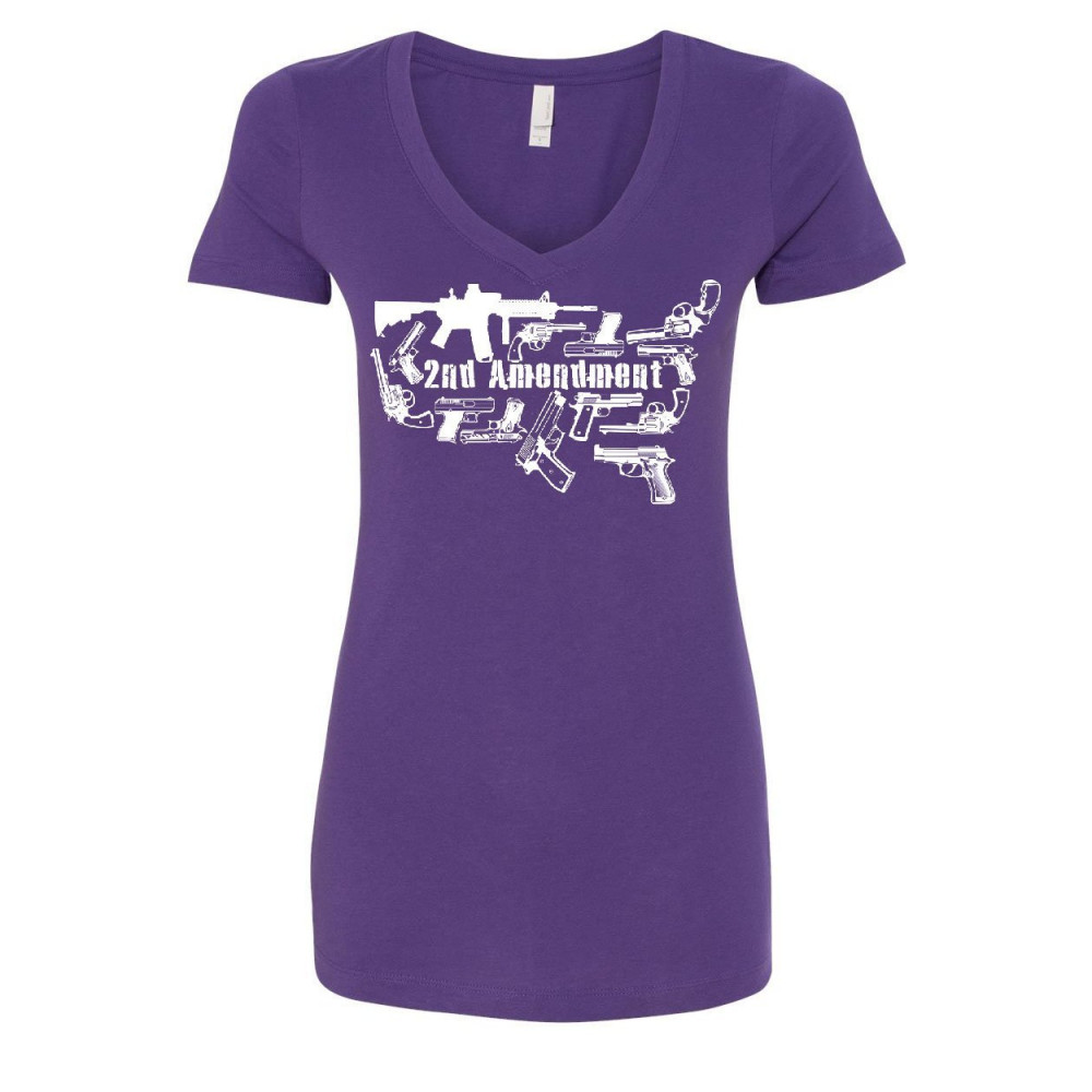 2ND AMENDMENT US SILHOUETTE women's v-neck t-shirt right to bear arms 2a guns purple
