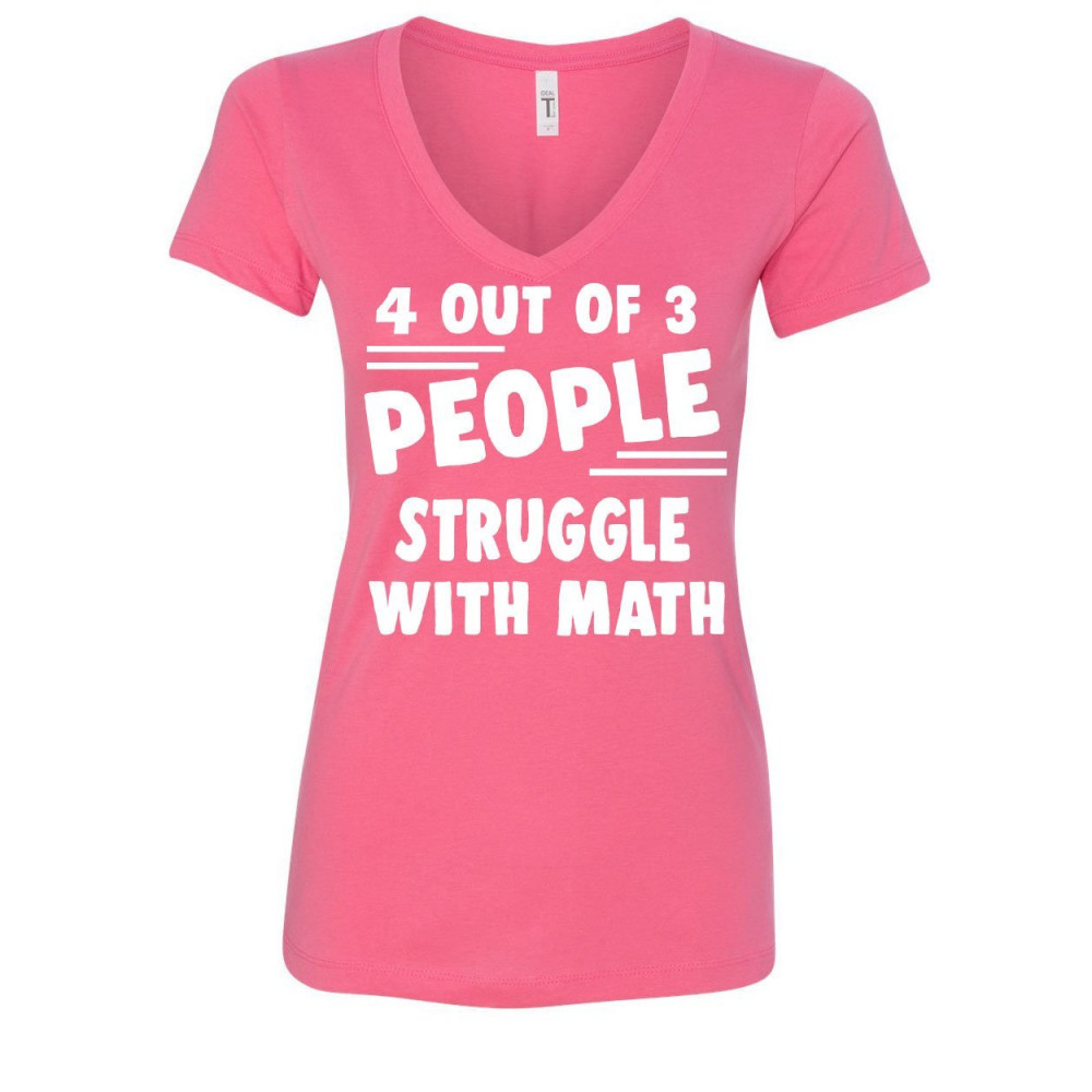4 OUT OF 3 PEOPLE STRUGGLE WITH MATH women's v-neck t-shirt funny college humor pink