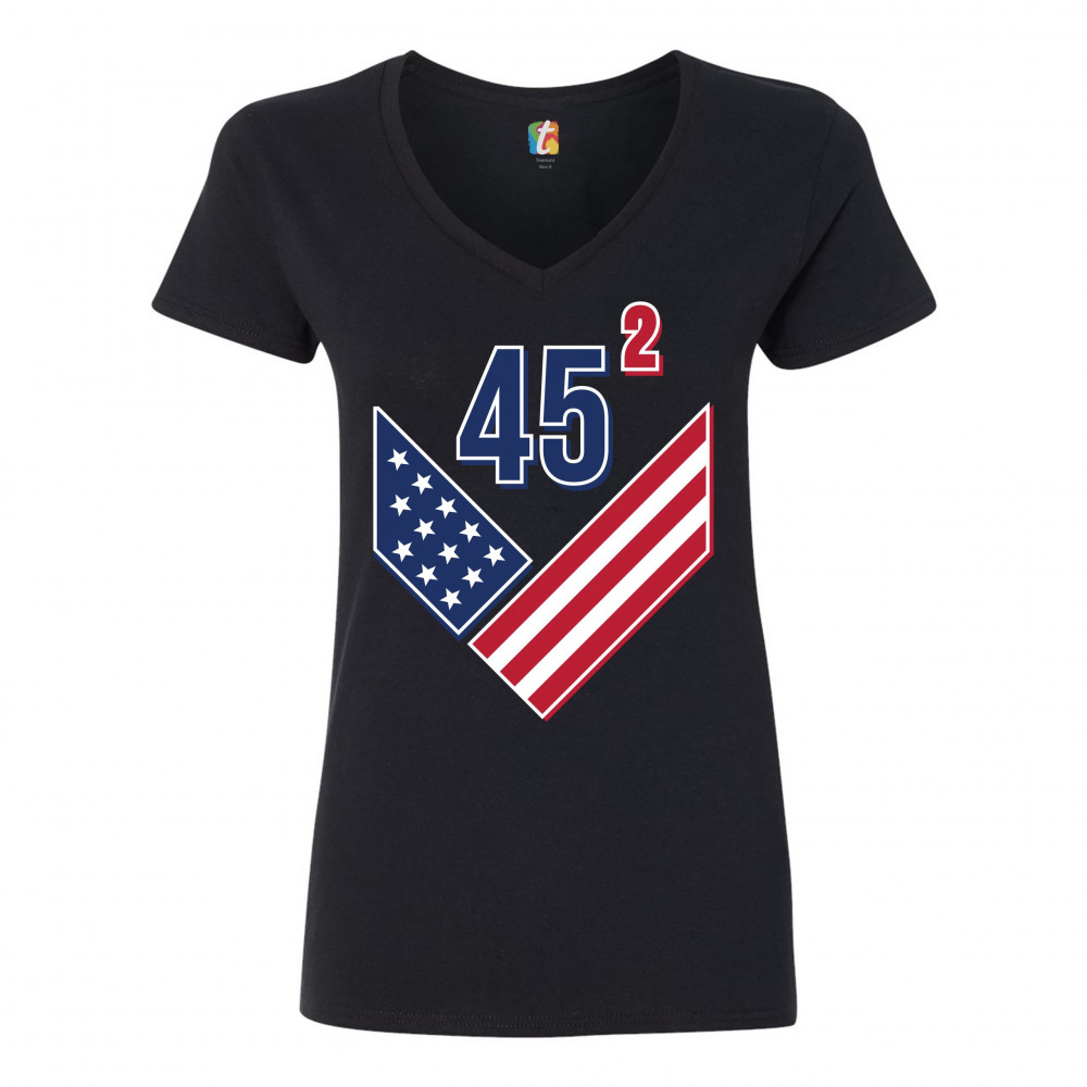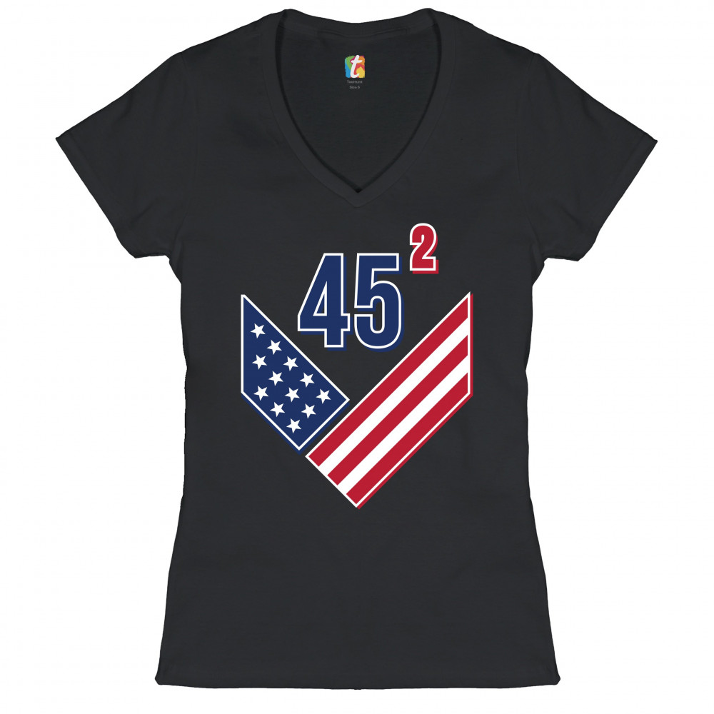 45 SQUARED women's v-neck t-shirt two terms donald trump conservative maga tee black