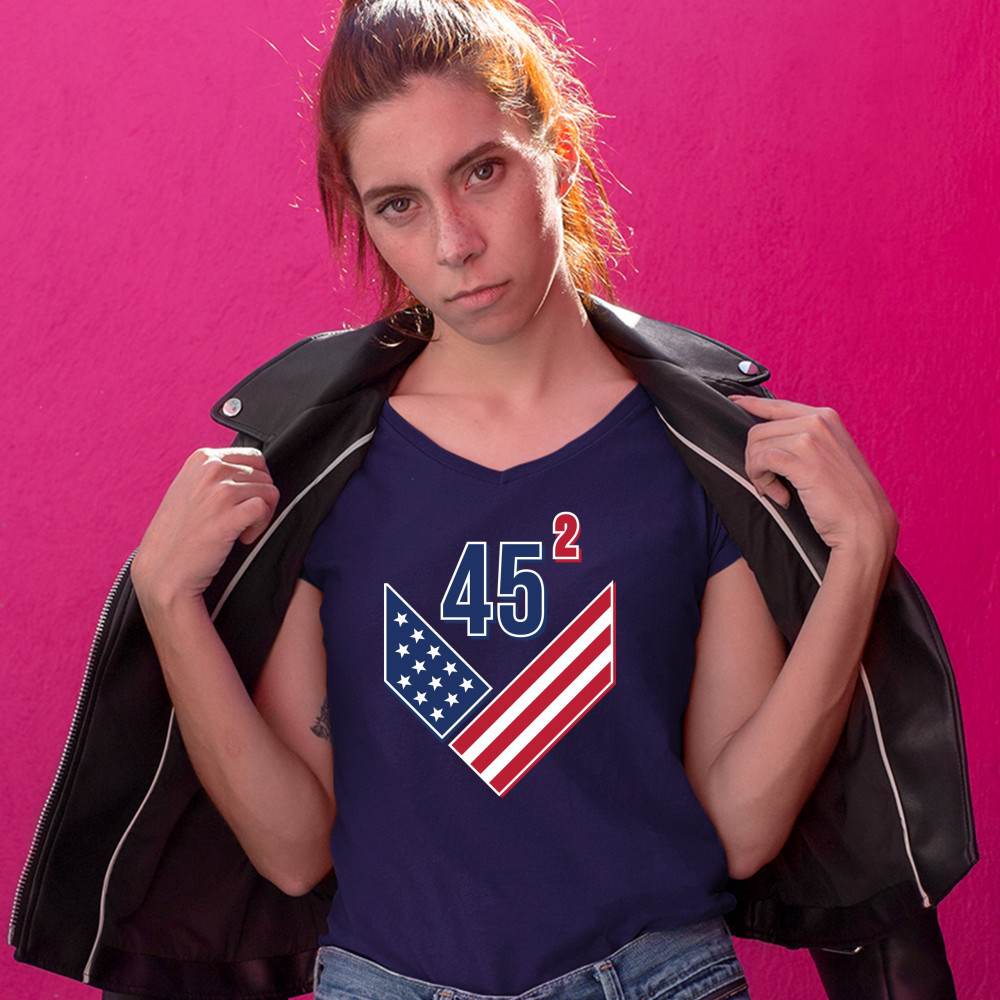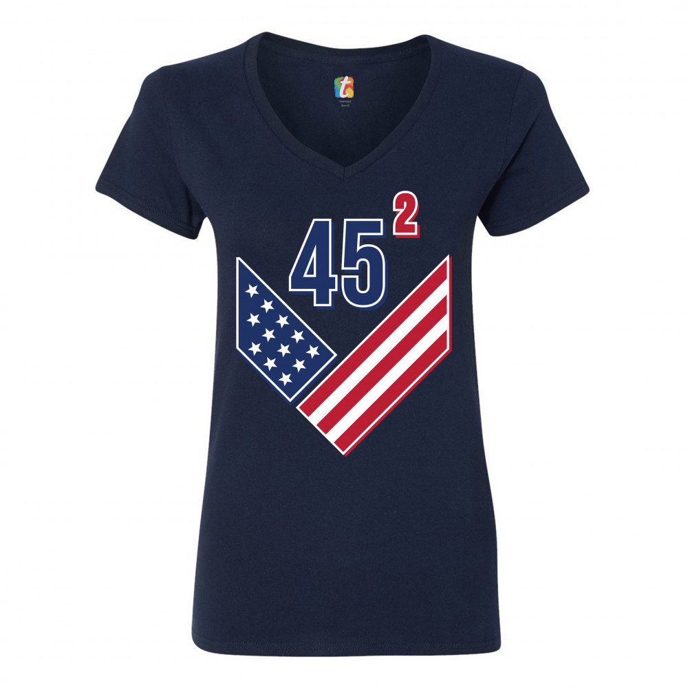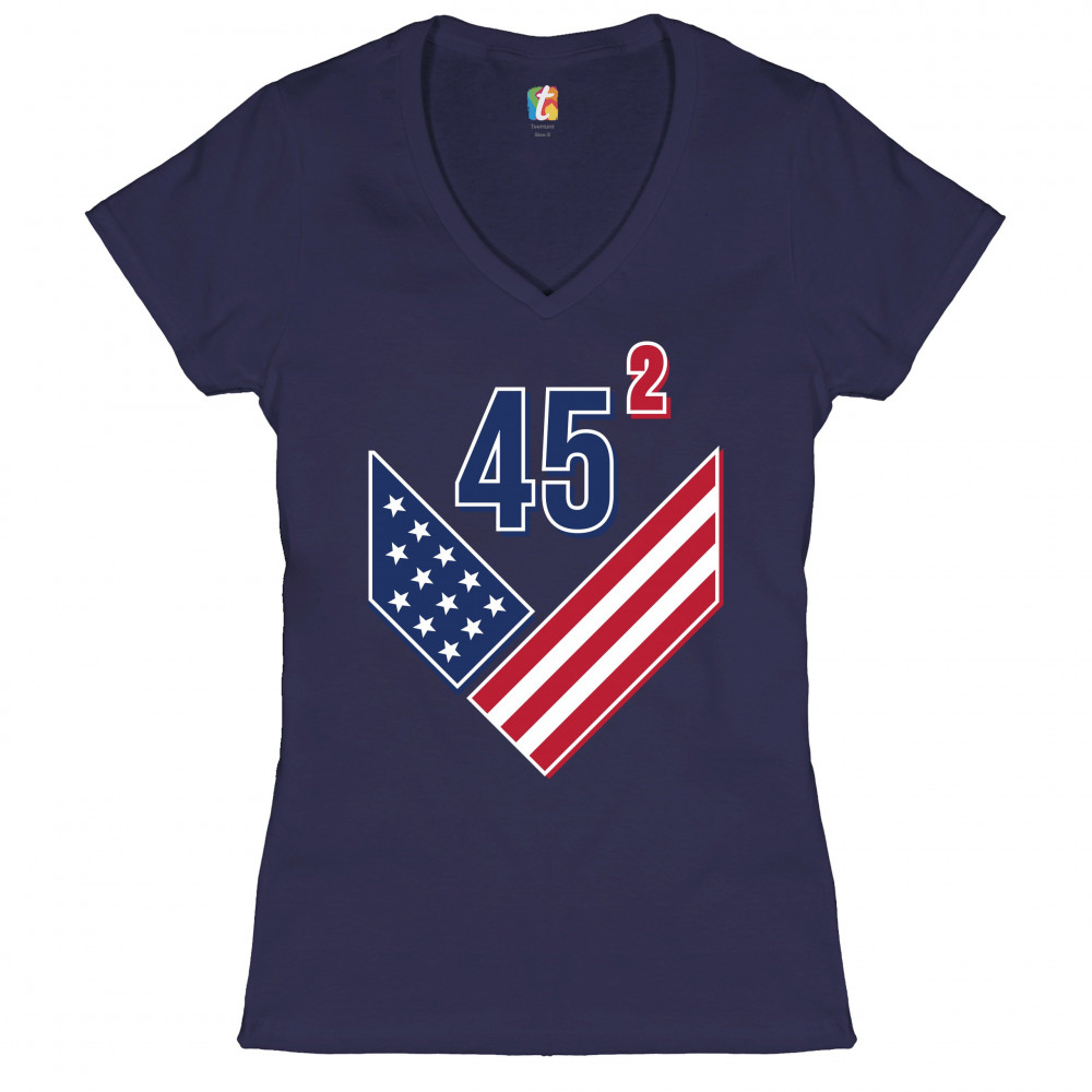 45 SQUARED women's v-neck t-shirt two terms donald trump conservative maga tee navy blue