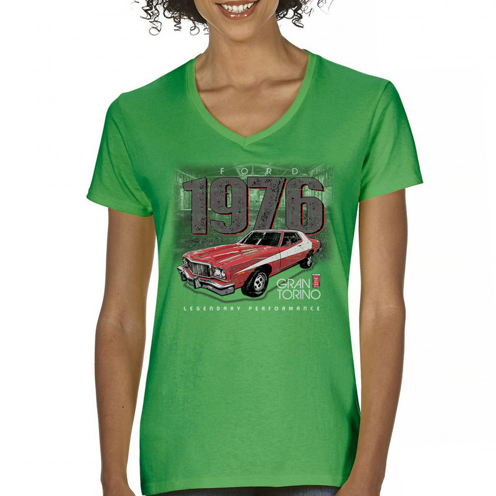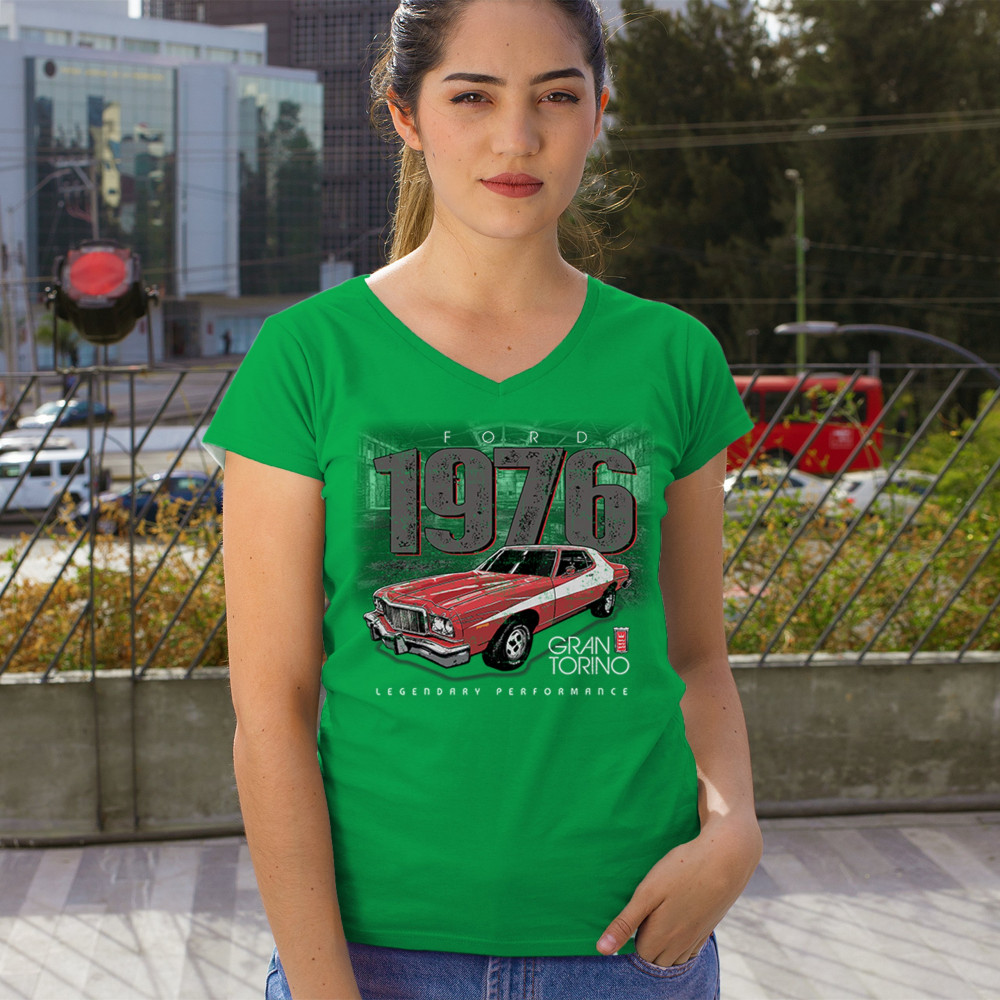 1976 Ford Gran Torino design with red and white retro style. Perfect for muscle car fans, Ford lovers, and classic car event gear.
