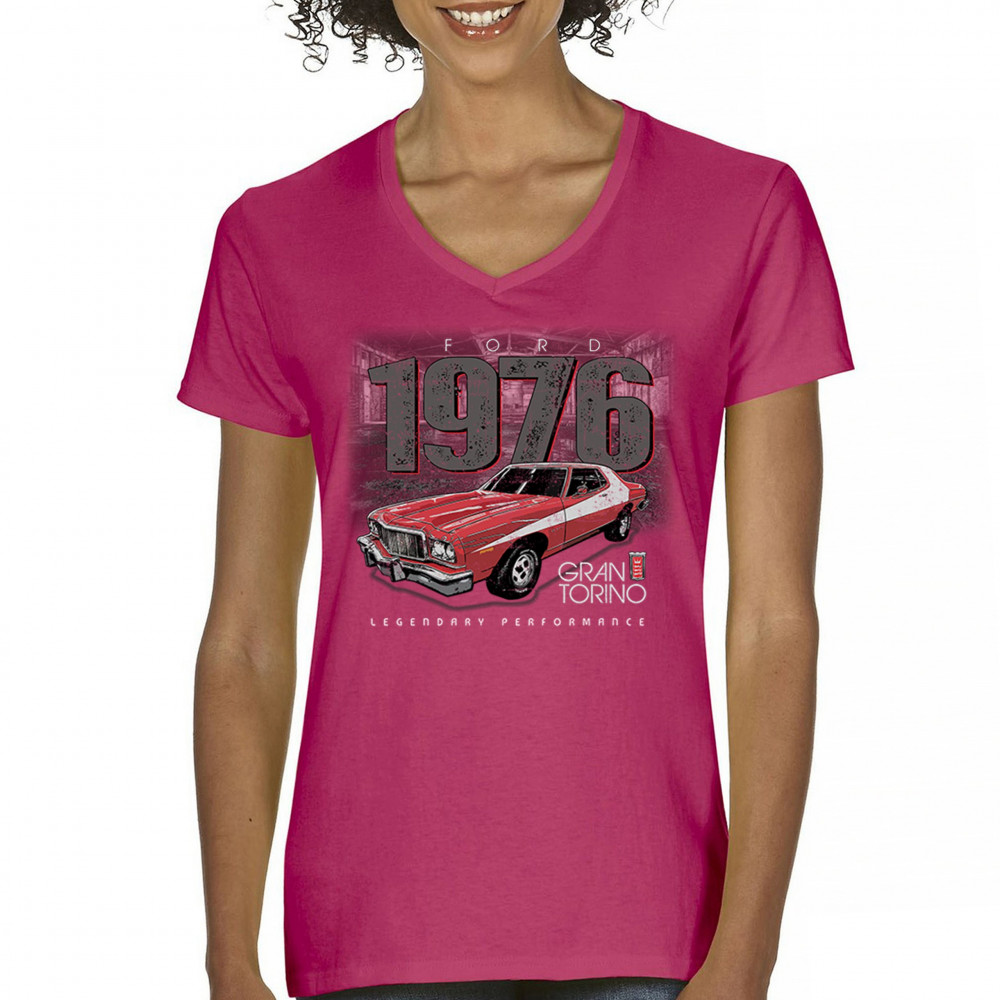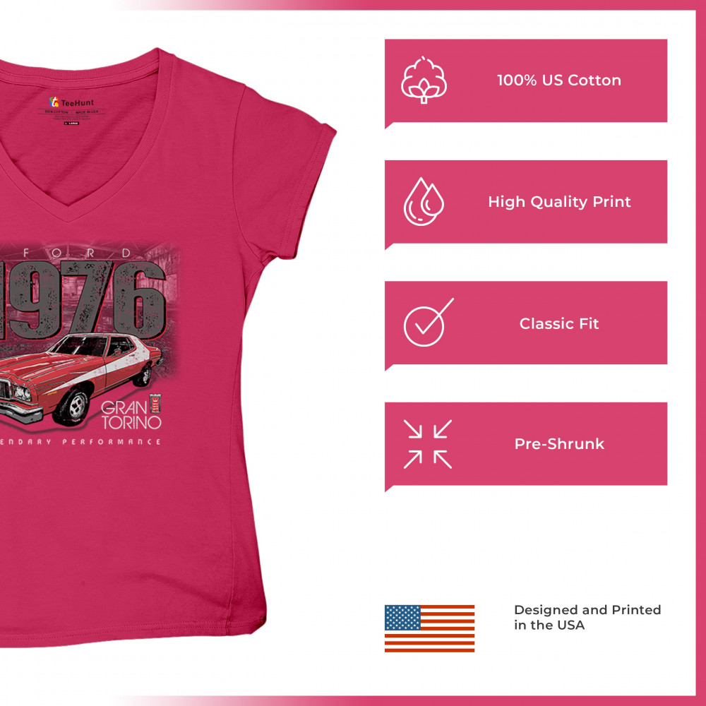 1976 Ford Gran Torino design with red and white retro style. Perfect for muscle car fans, Ford lovers, and classic car event gear.