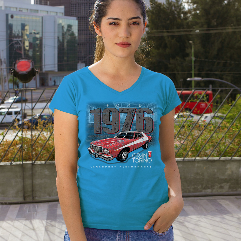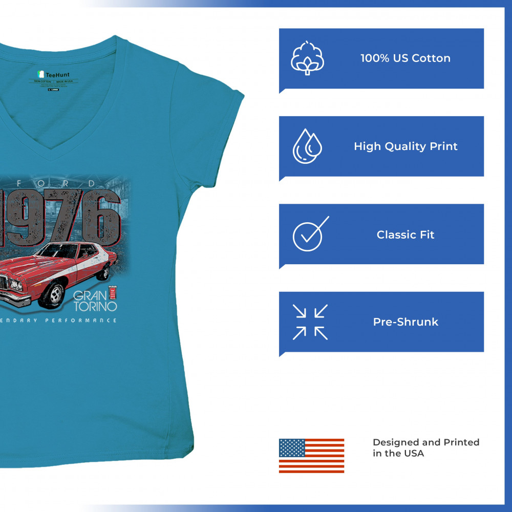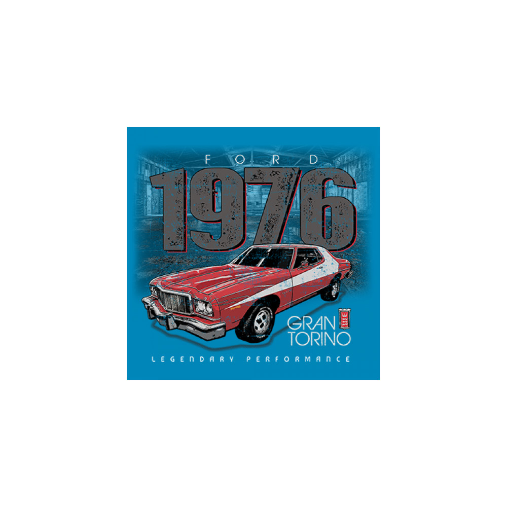1976 Ford Gran Torino design with red and white retro style. Perfect for muscle car fans, Ford lovers, and classic car event gear.