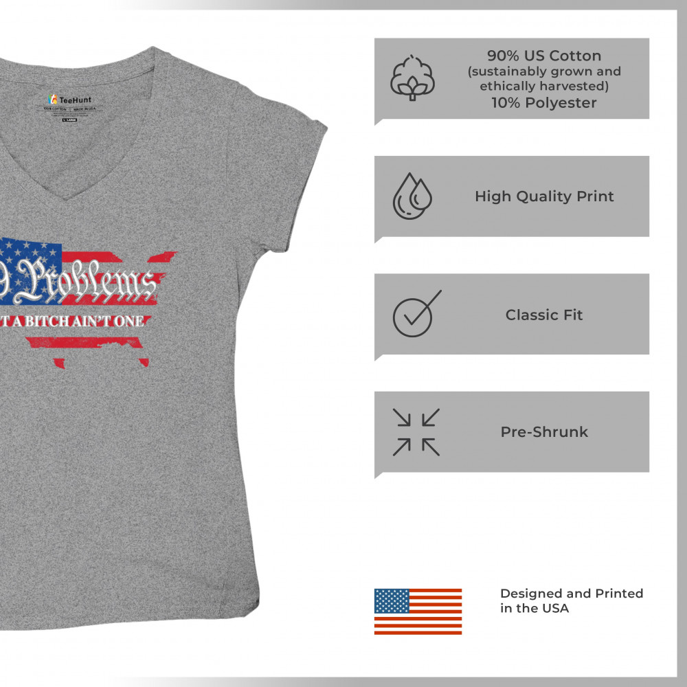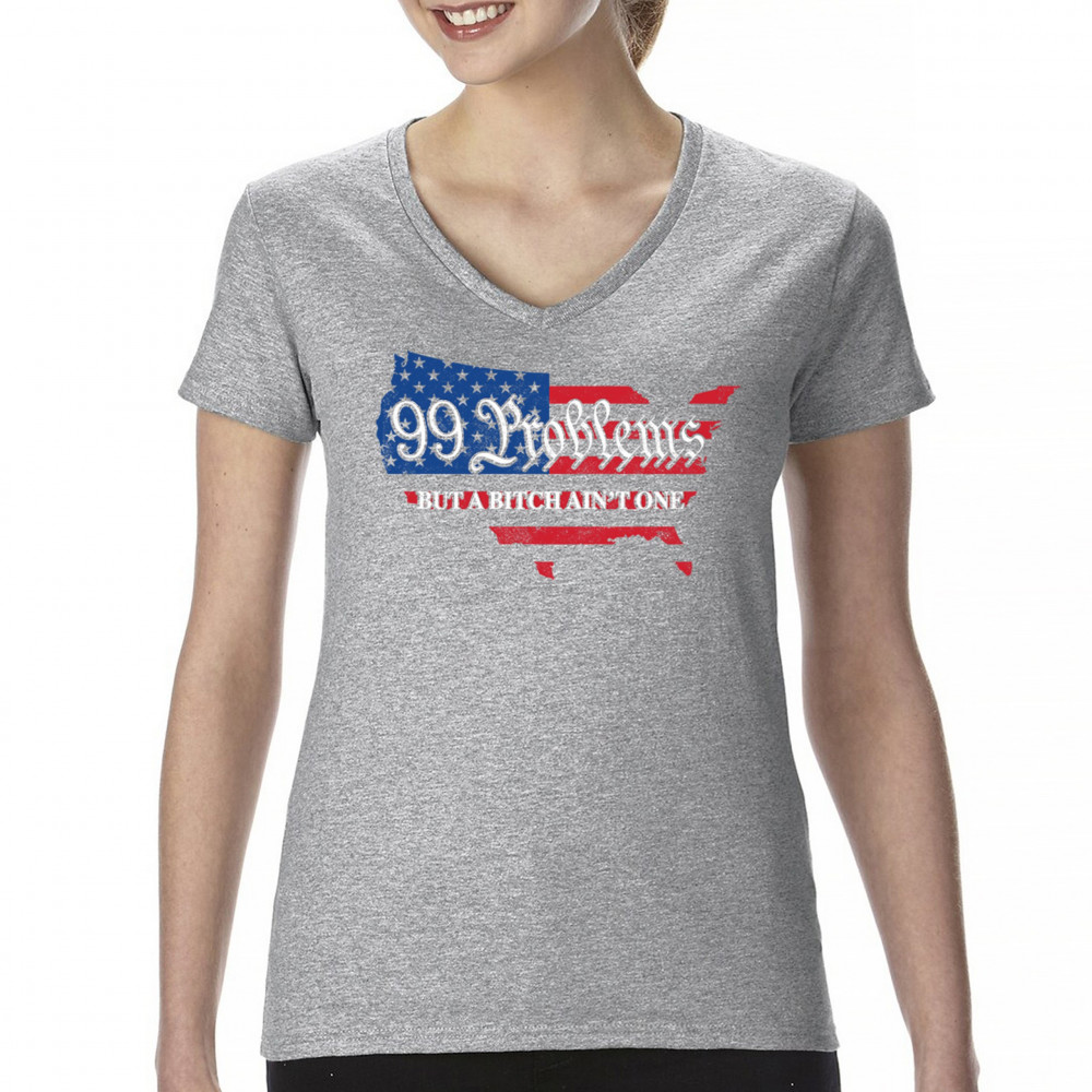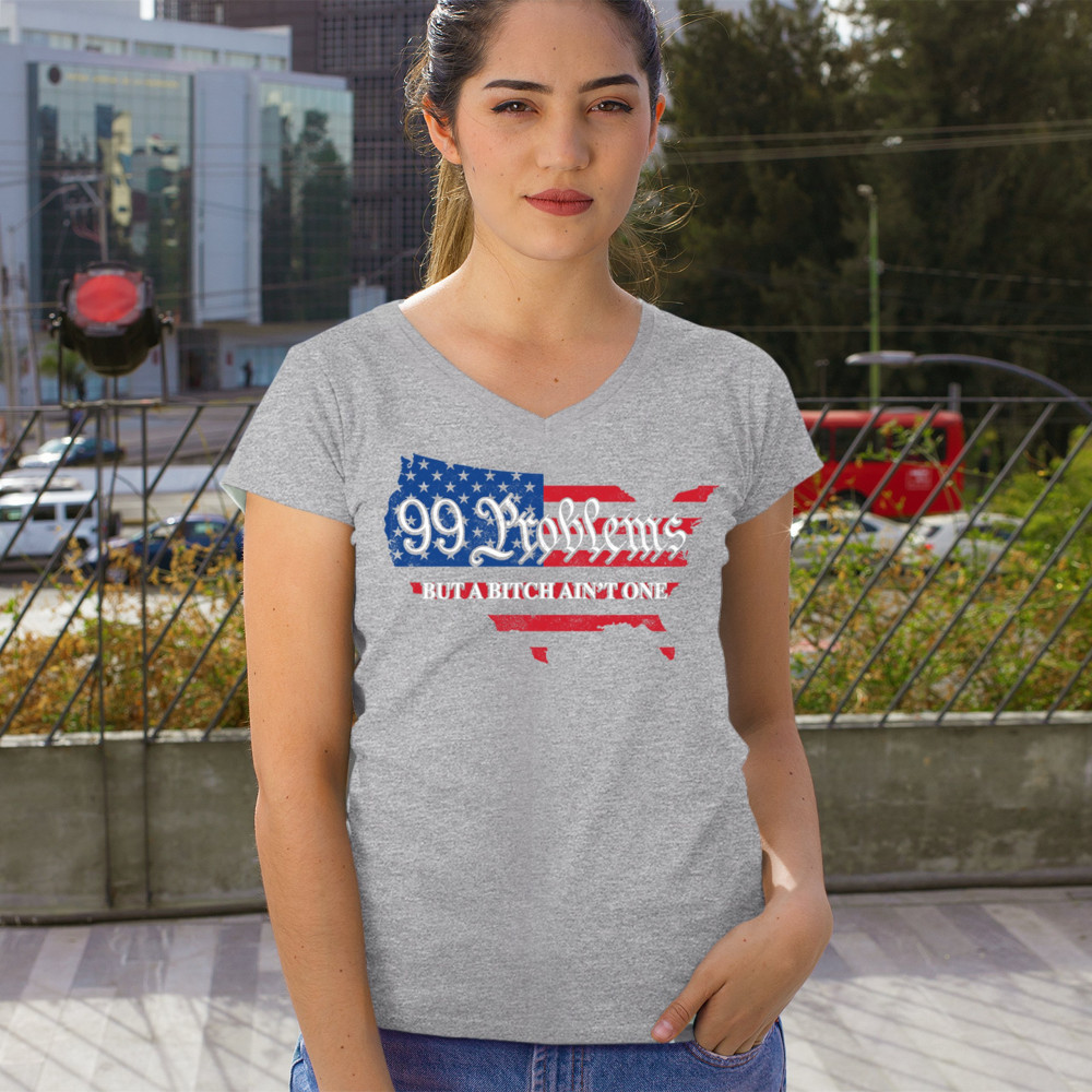 Embrace your patriotic spirit with this striking "99 Problems But a B*tch Ain't One" design, blending the American map and flag-inspired elements. Perfect for Trump supporters, conservatives, and all who believe in the values of freedom, victory, and the Republican Red Wave. Celebrate your commitment to America and make a statement that reflects your unwavering belief in the people's mandate and the party of common sense.
