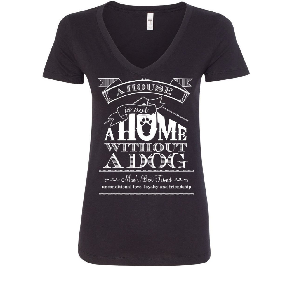 A HOUSE IS NOT A HOME WITHOUT A DOG women's v-neck t-shirt pet paw labrador black