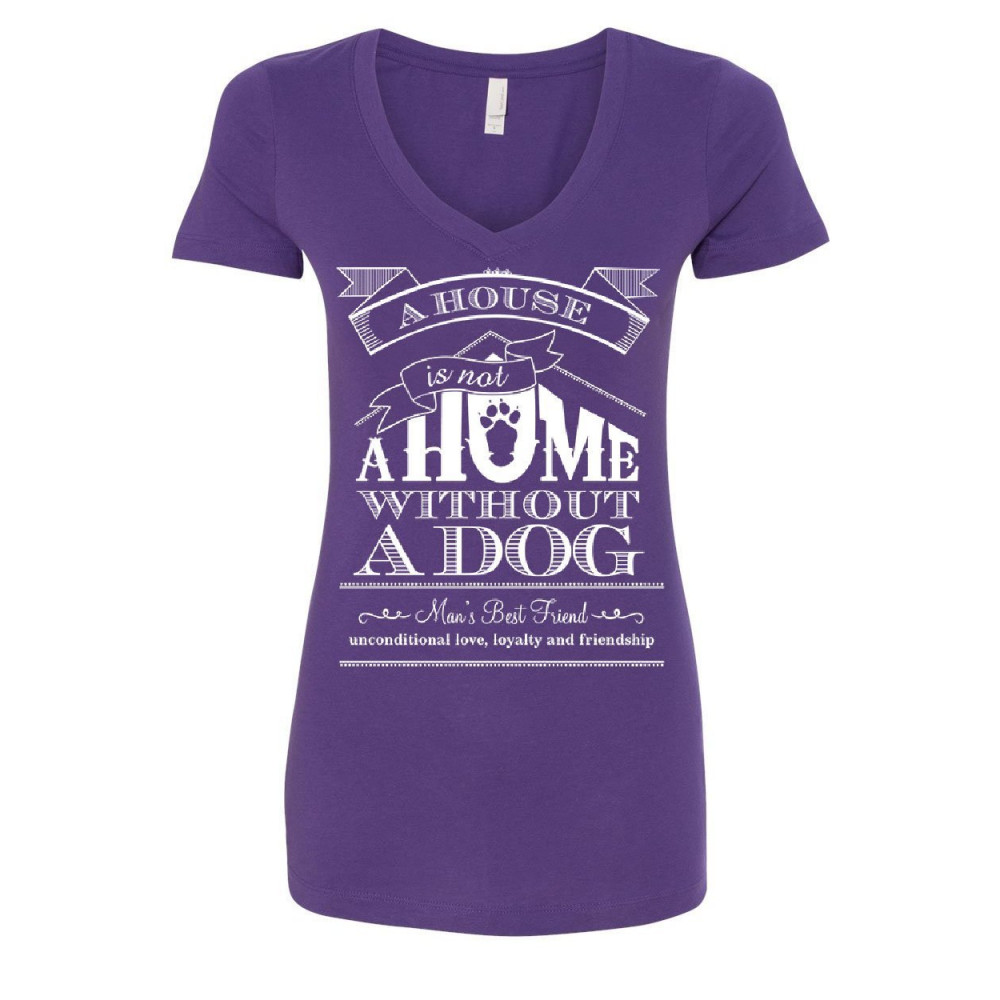 A HOUSE IS NOT A HOME WITHOUT A DOG women's v-neck t-shirt pet paw labrador purple