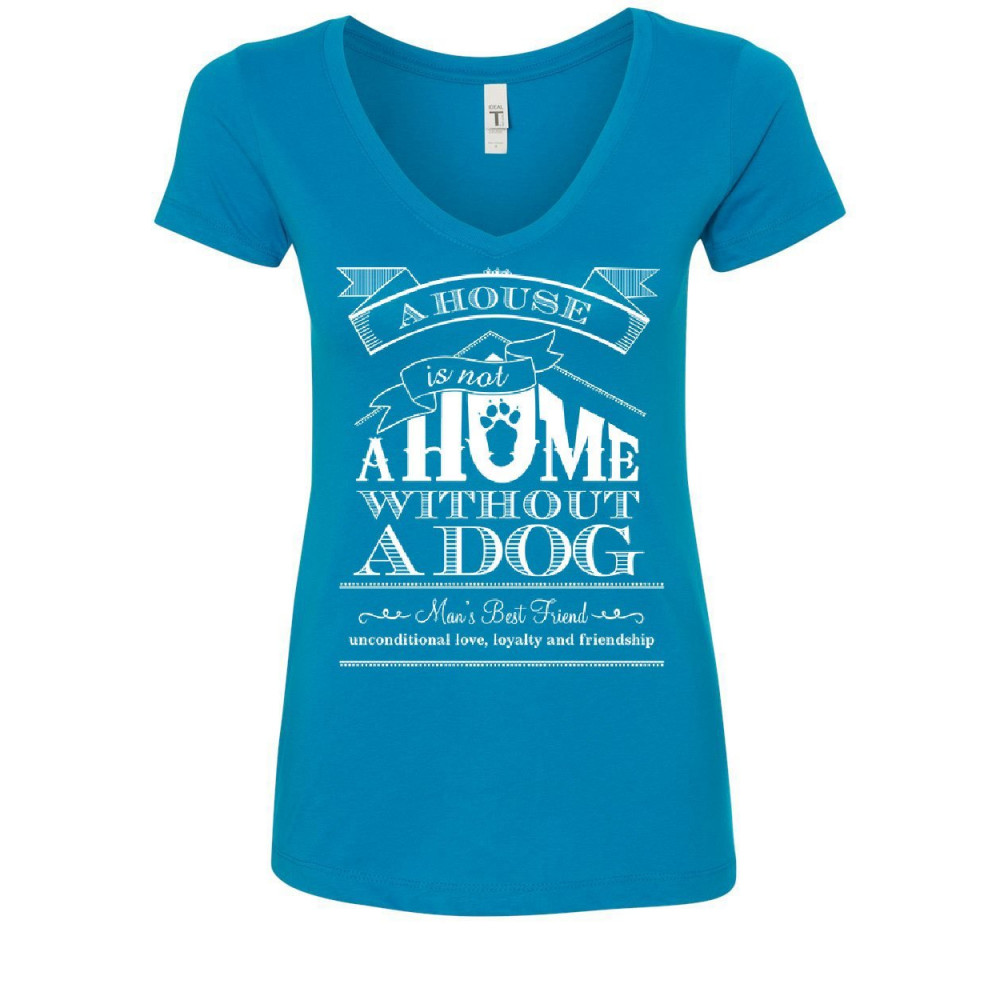 A HOUSE IS NOT A HOME WITHOUT A DOG women's v-neck t-shirt pet paw labrador turquoise