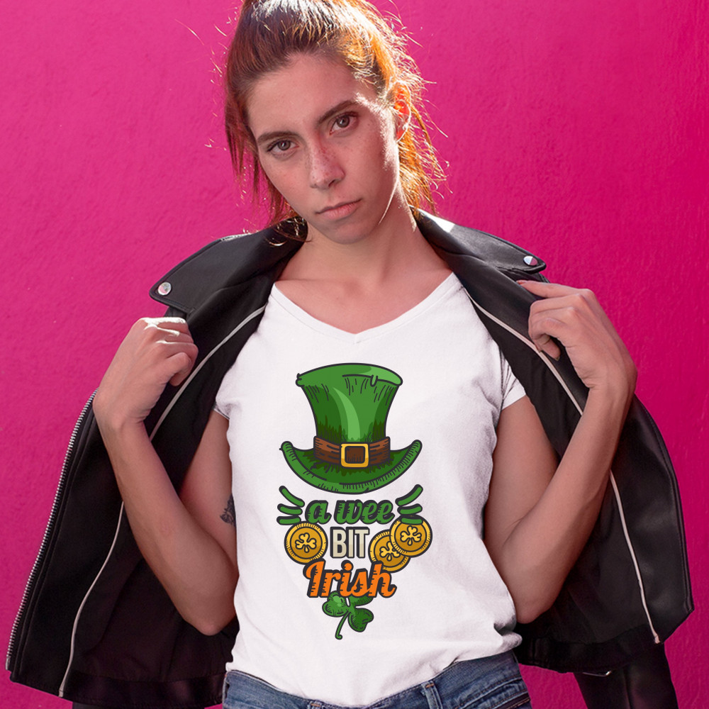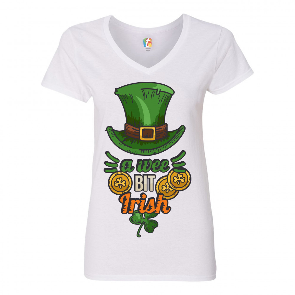 A WEE BIT IRISH women's v-neck t-shirt st. patrick's day clover leprechaun tee white