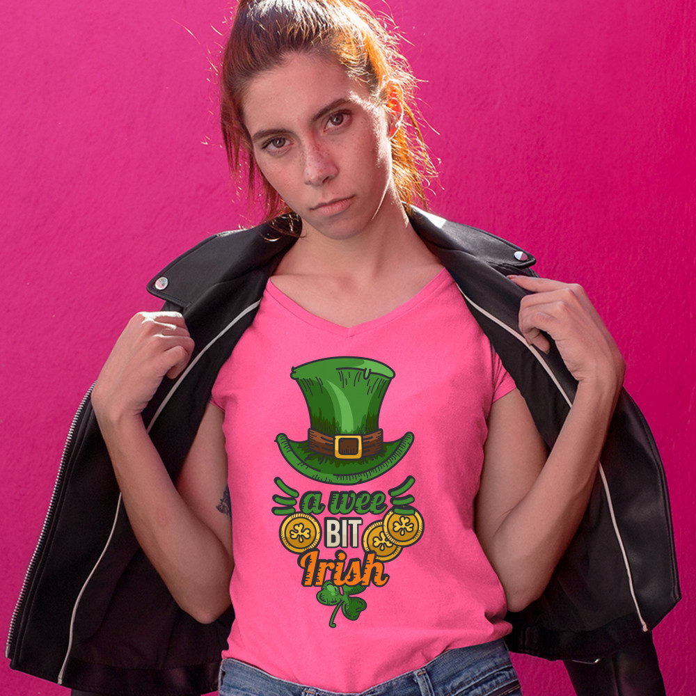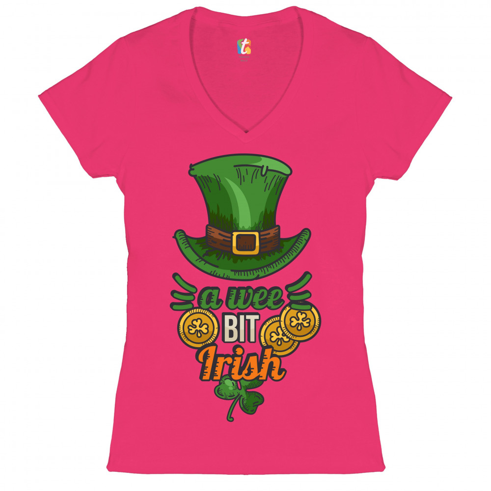 A WEE BIT IRISH women's v-neck t-shirt st. patrick's day clover leprechaun tee pink