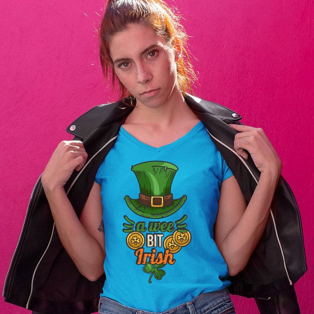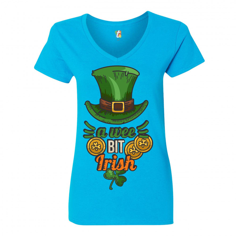 A WEE BIT IRISH women's v-neck t-shirt st. patrick's day clover leprechaun tee turquoise
