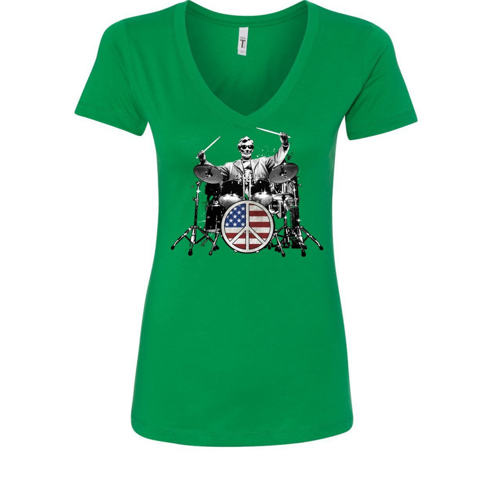 ABRAHAM LINCOLN ROCK & ROLL STAR women's v-neck t-shirt lincoln memorial peace green