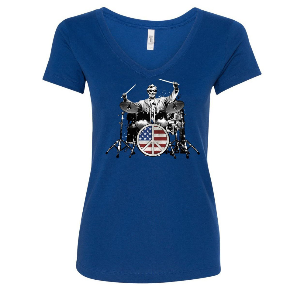 ABRAHAM LINCOLN ROCK & ROLL STAR women's v-neck t-shirt lincoln memorial peace royal blue