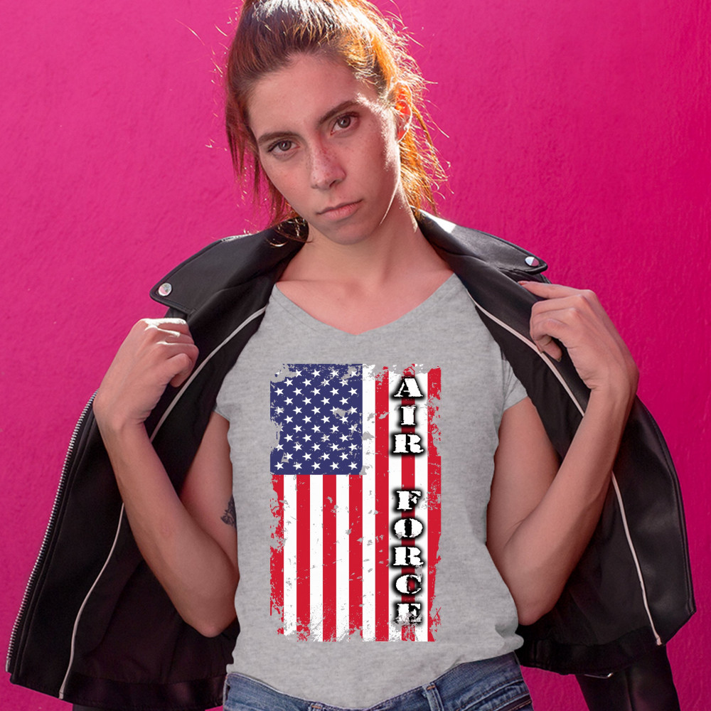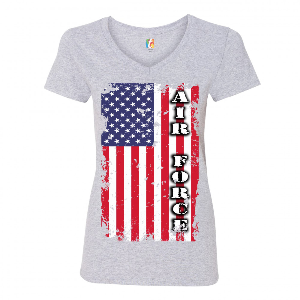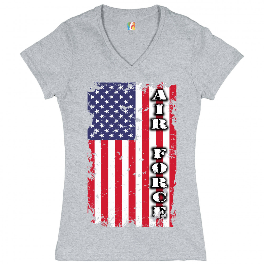 AIR FORCE women's v-neck t-shirt distressed american flag us armed forces tee gray