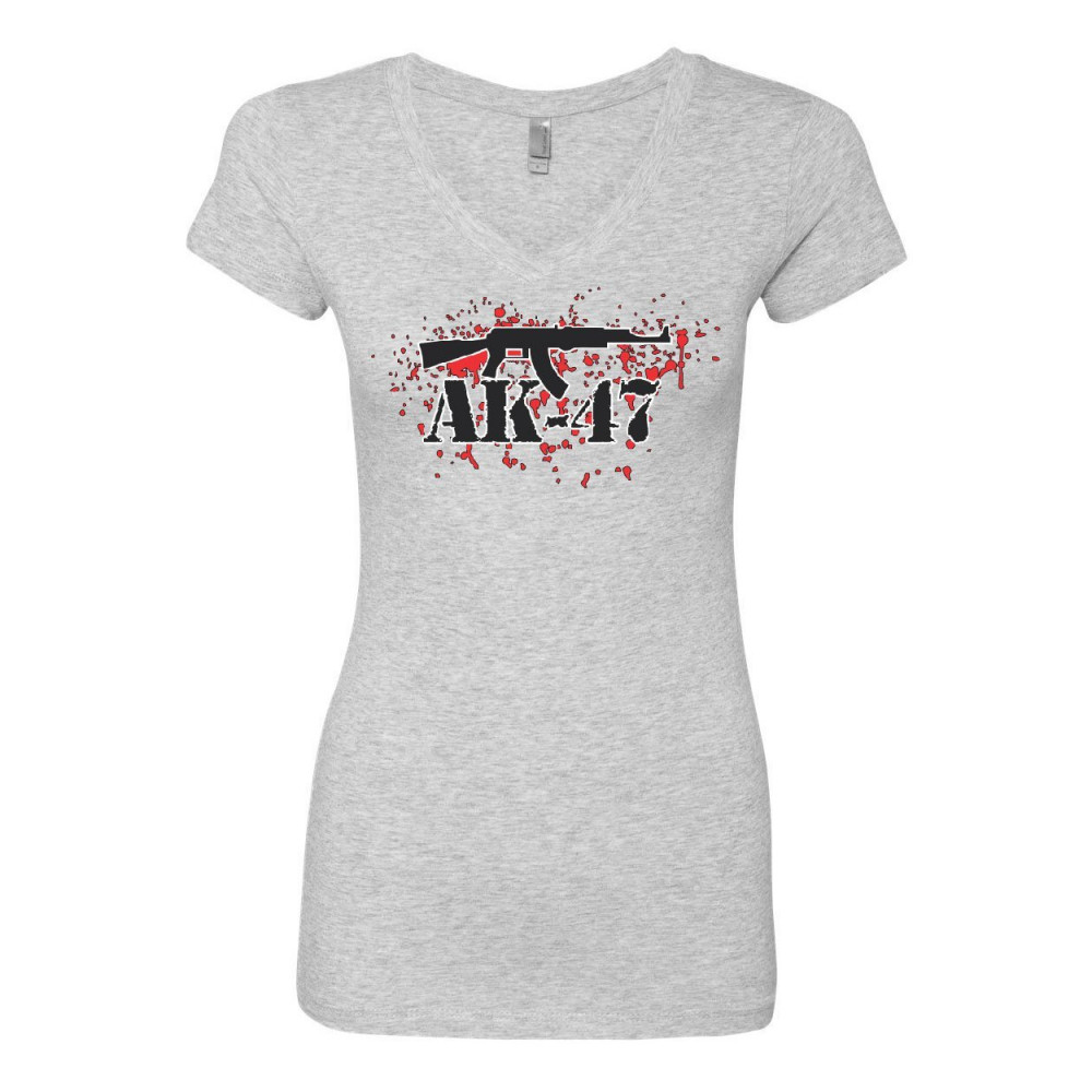 AK-47 rifle women's v-neck t-shirt 2nd amendment supporter defend 2a gun rights gray