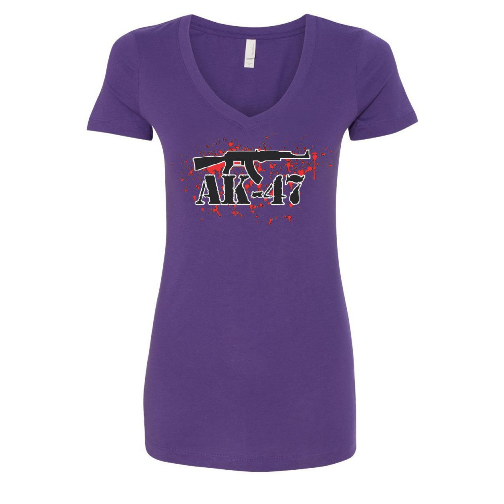 AK-47 rifle women's v-neck t-shirt 2nd amendment supporter defend 2a gun rights purple