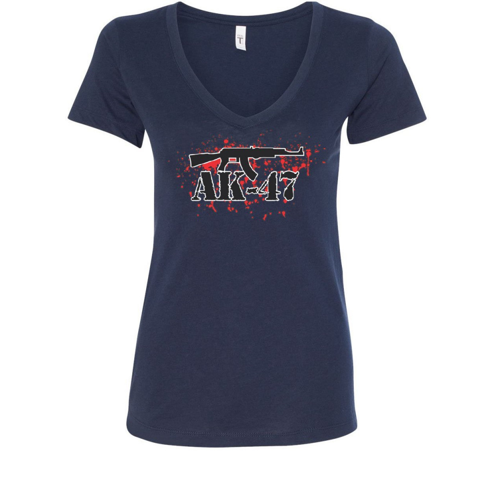 AK-47 rifle women's v-neck t-shirt 2nd amendment supporter defend 2a gun rights navy blue
