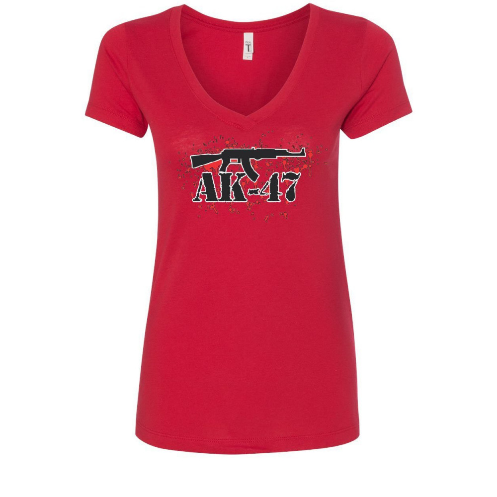 AK-47 rifle women's v-neck t-shirt 2nd amendment supporter defend 2a gun rights red
