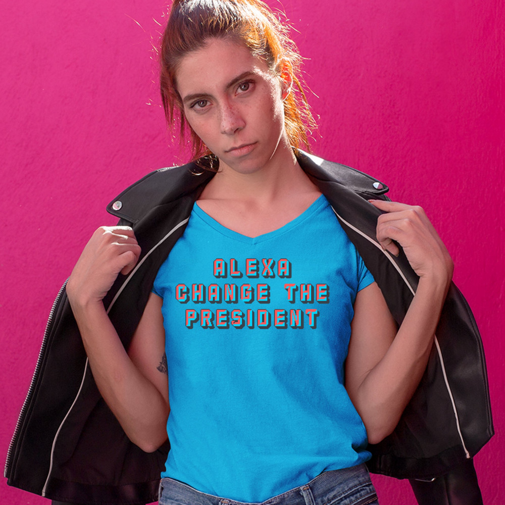 A print saying "Alexa Change the President". A great choice to wear to a Trump rally or give as a gift to a Donald Trump supporter before 2024 presidential elections.