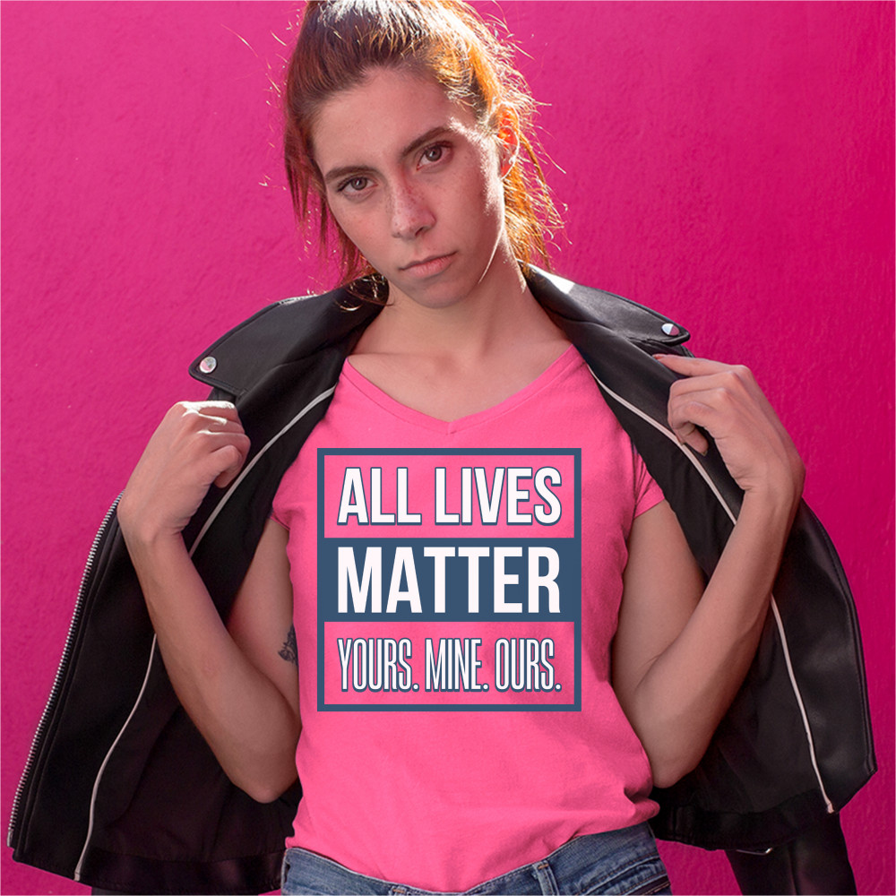 ALL LIVES MATTER women's v-neck t-shirt tolerance equality inspirational tee pink