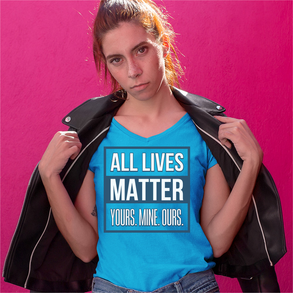 ALL LIVES MATTER women's v-neck t-shirt tolerance equality inspirational tee turquoise